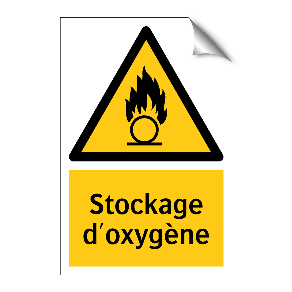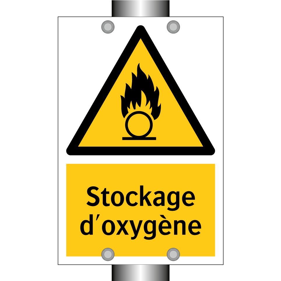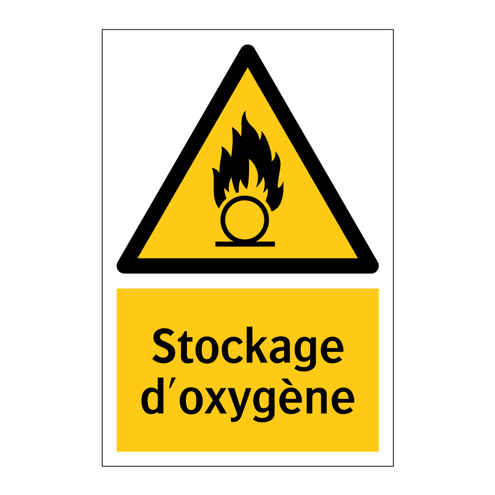 Panneau d'avertissement avec le texte : "Stockage d'oxygène"