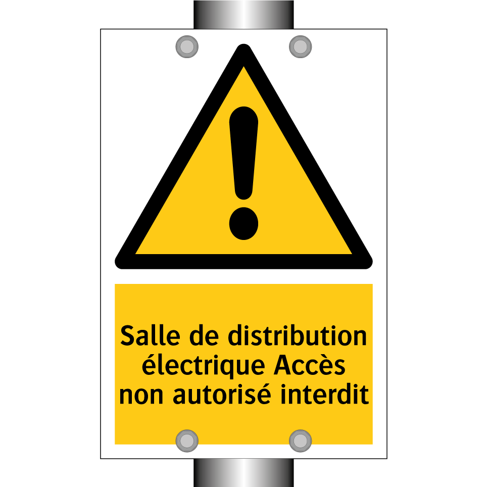 Panneau d'avertissement avec le texte : "Salle de distribution électrique Accès non autorisé interdit"