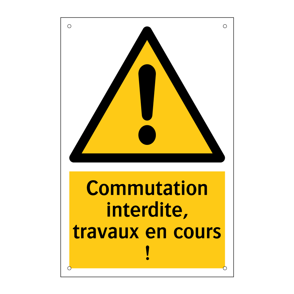 Panneau d'avertissement avec le texte : "Commutation interdite, travaux en cours !"