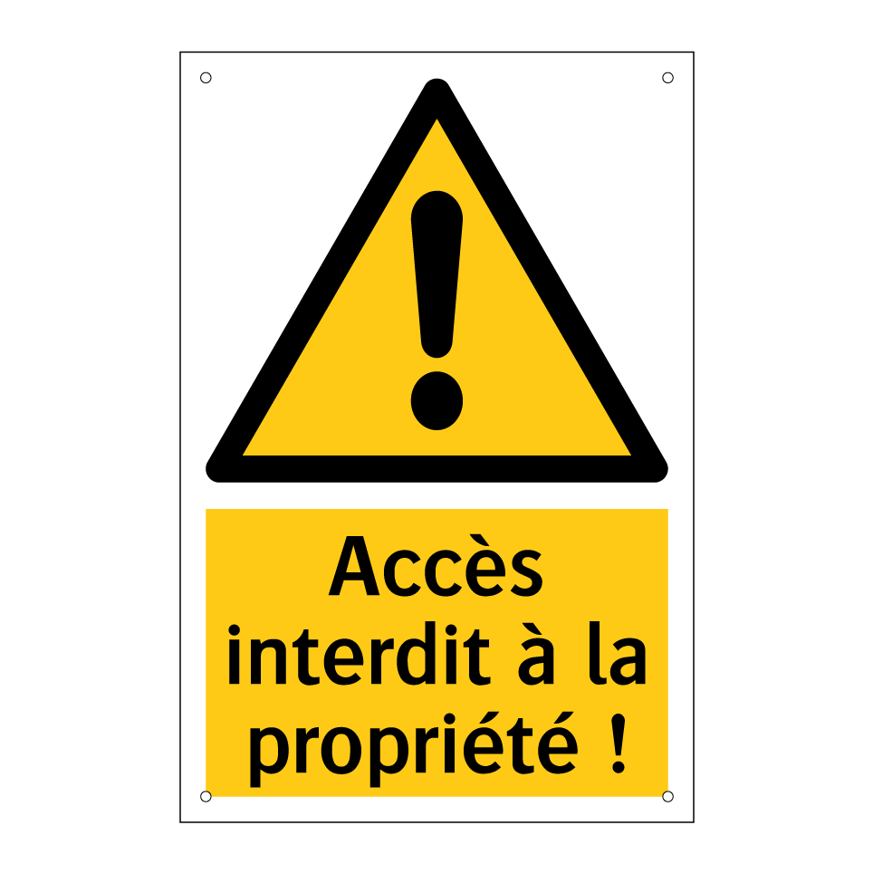 Panneau d'avertissement avec le texte : "Accès interdit à la propriété !"
