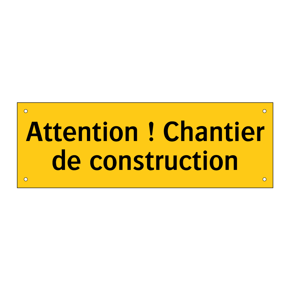 Panneau d'avertissement avec le texte : "Attention ! Chantier de construction"