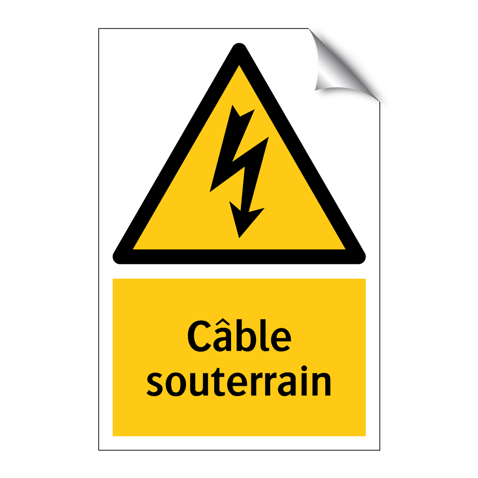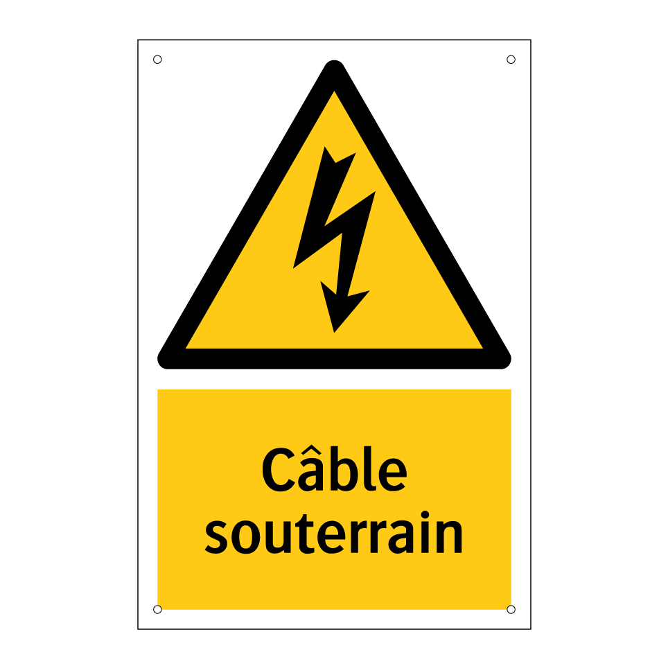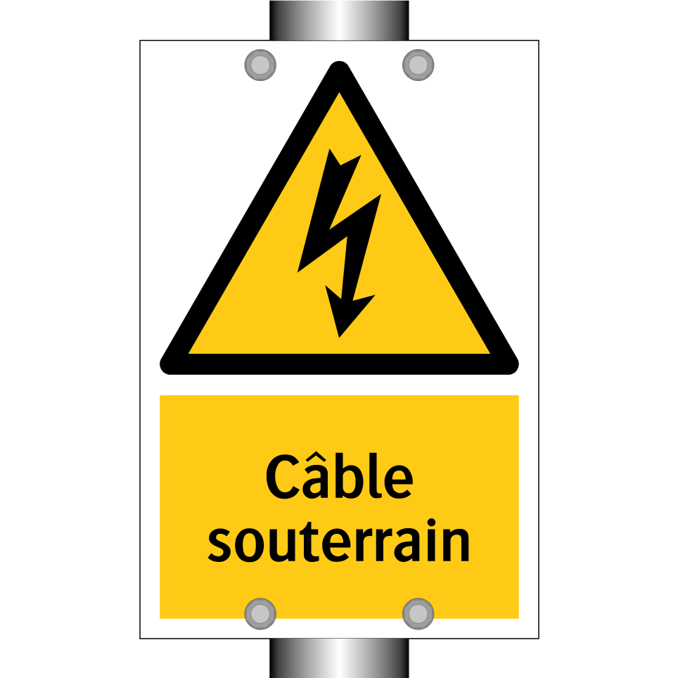 Panneau d'avertissement avec le texte : "Câble souterrain"