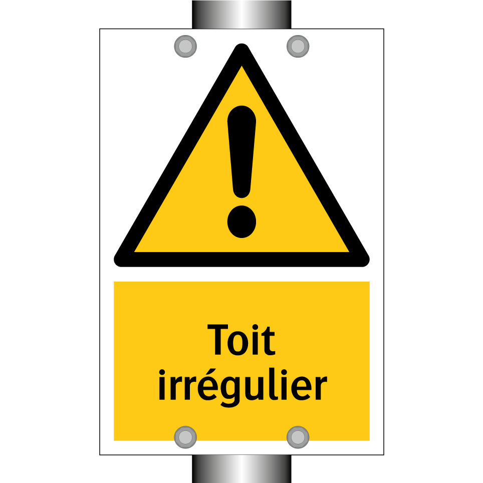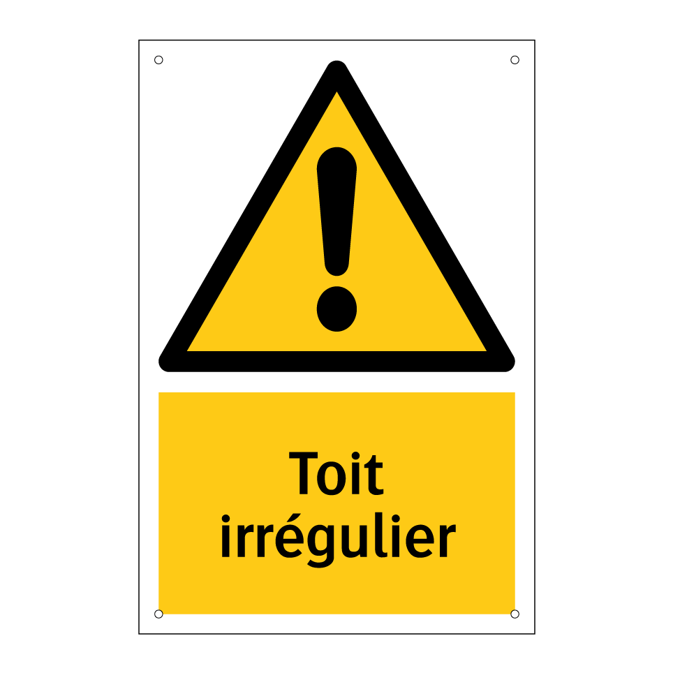 Panneau d'avertissement avec le texte : "Toit irrégulier"