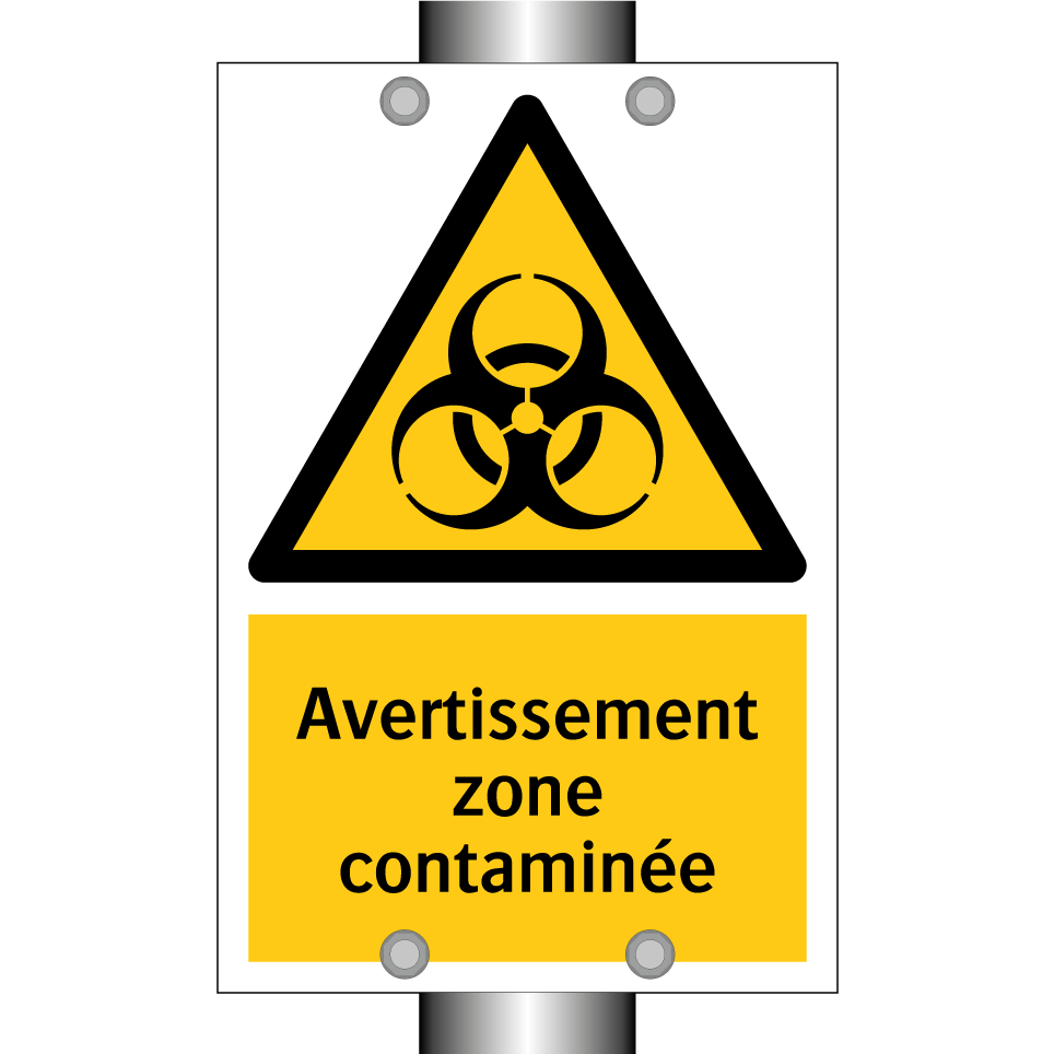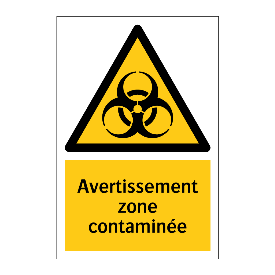 Panneau d'avertissement avec le texte : "Avertissement zone contaminée"