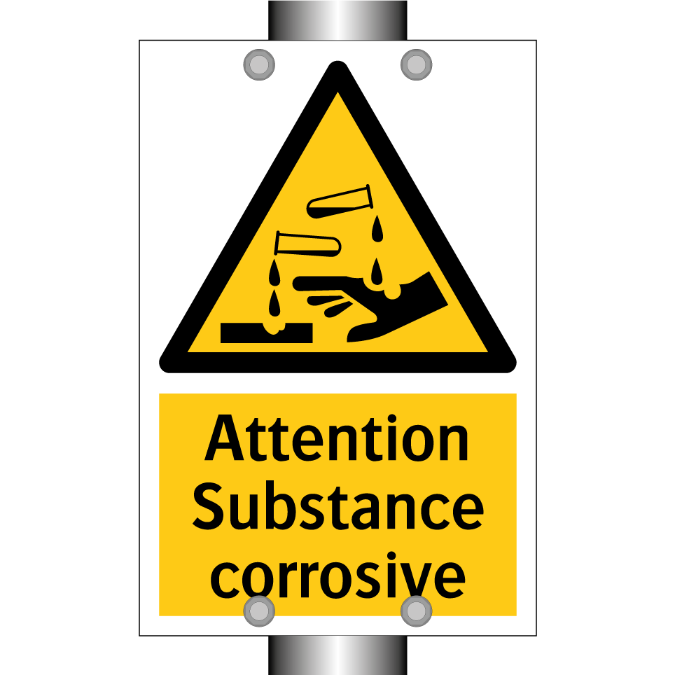 Panneau d'avertissement avec le texte : "Attention Substance corrosive"