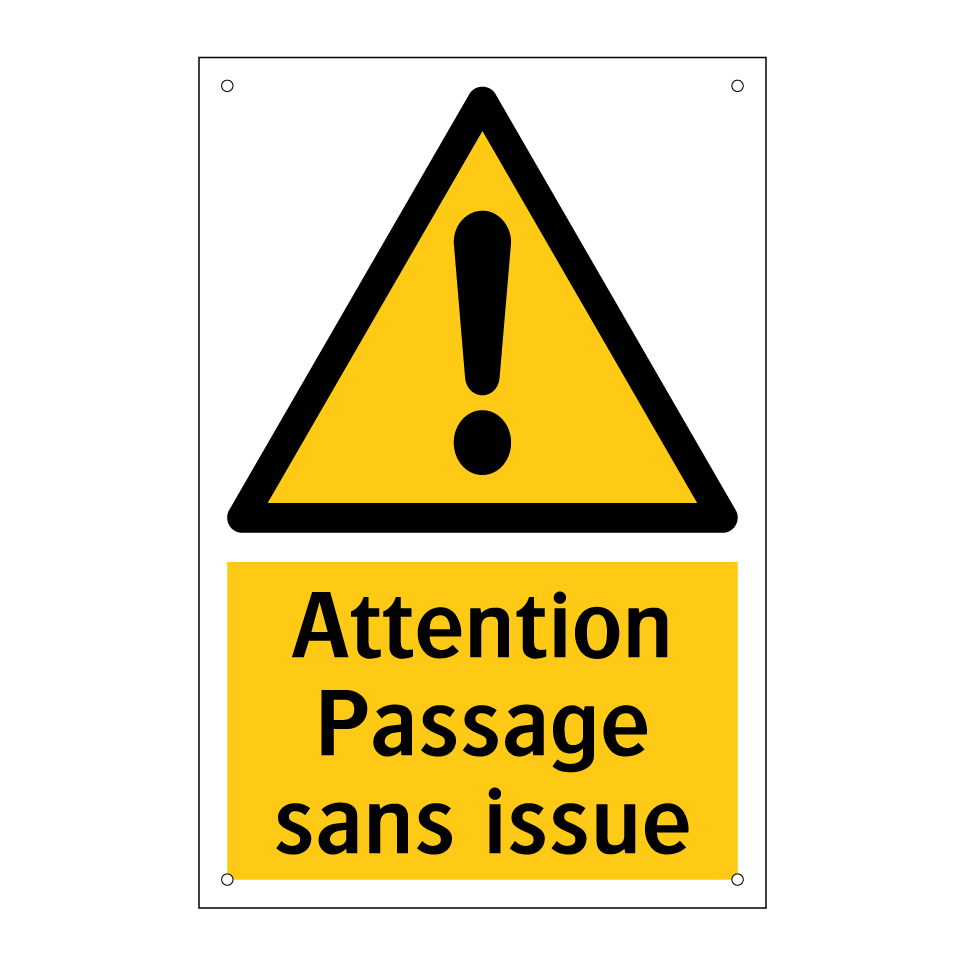 Panneau d'avertissement avec le texte : "Attention Passage sans issue"