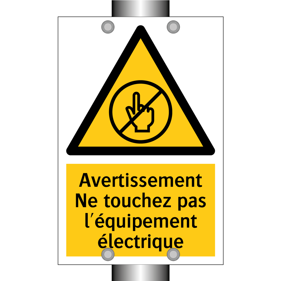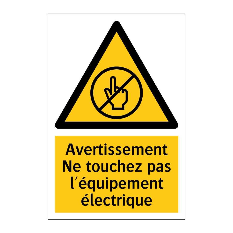 Panneau d'avertissement avec le texte : "Avertissement Ne touchez pas l'équipement électrique"