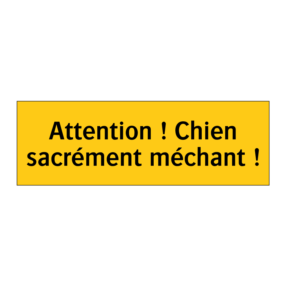 Panneau d'avertissement avec le texte : "Attention ! Chien sacrément méchant !"