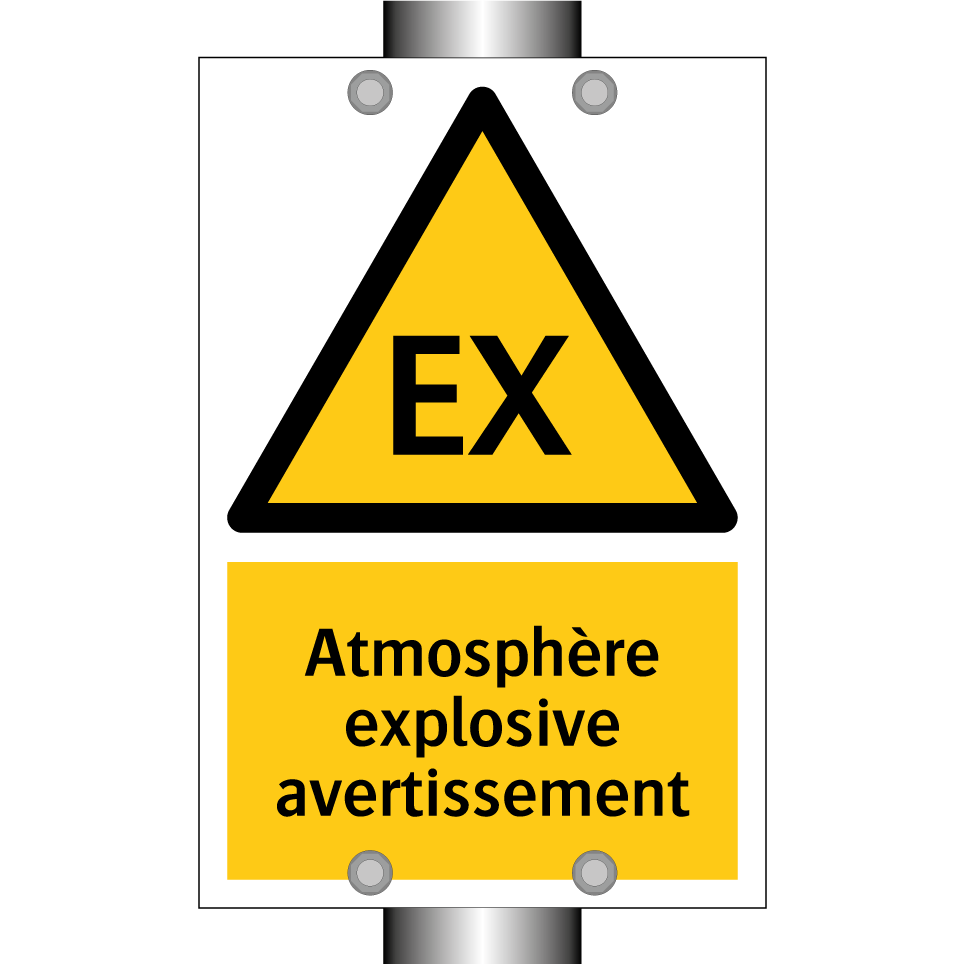Panneau d'avertissement avec le texte : "Atmosphère explosive avertissement"