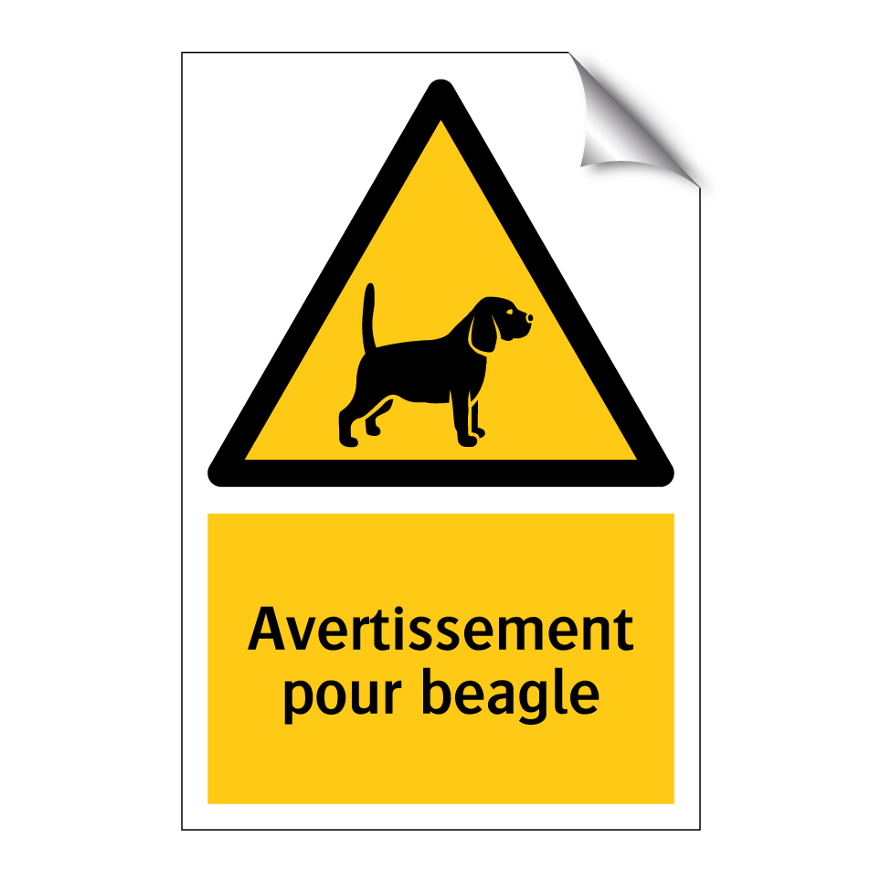 Panneau d'avertissement avec le texte : "Avertissement pour beagle"