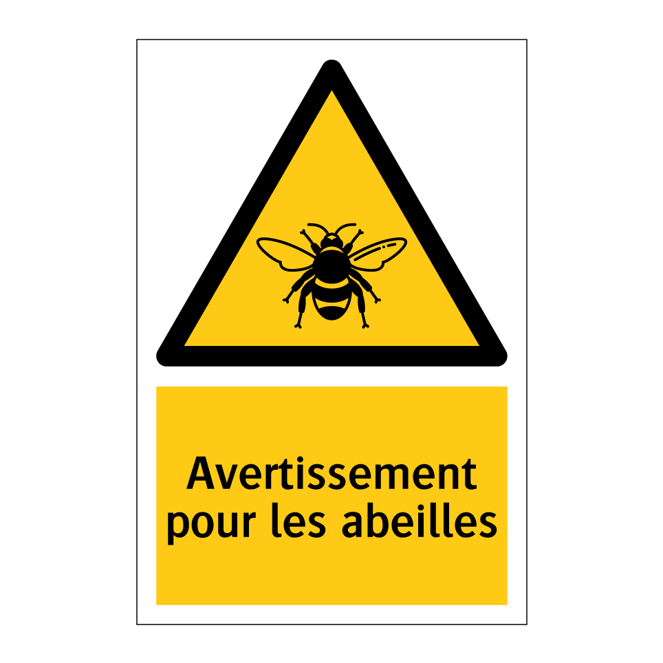 Panneau d'avertissement avec le texte : "Avertissement pour les abeilles"