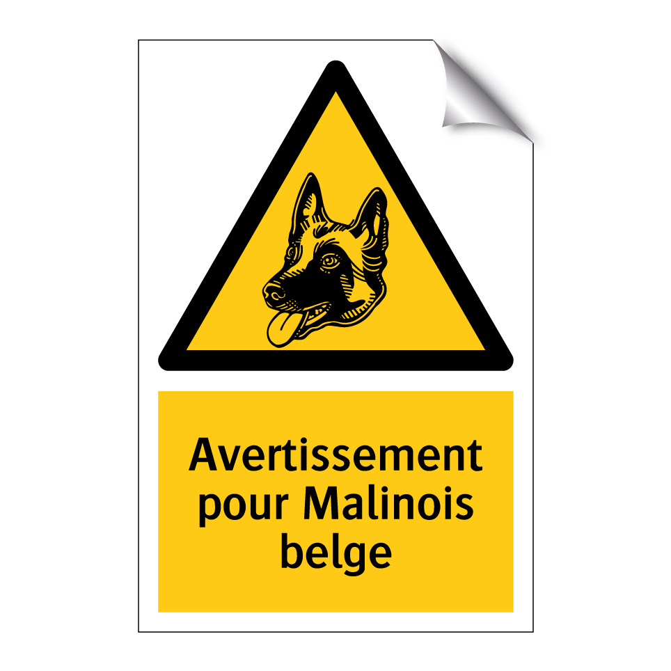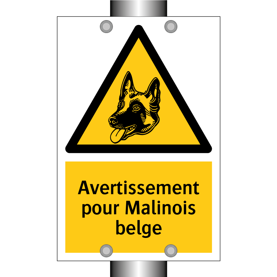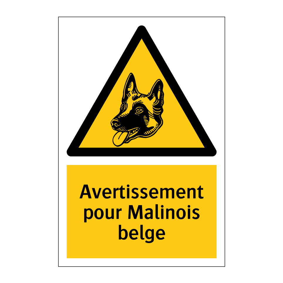 Panneau d'avertissement avec le texte : "Avertissement pour Malinois belge"