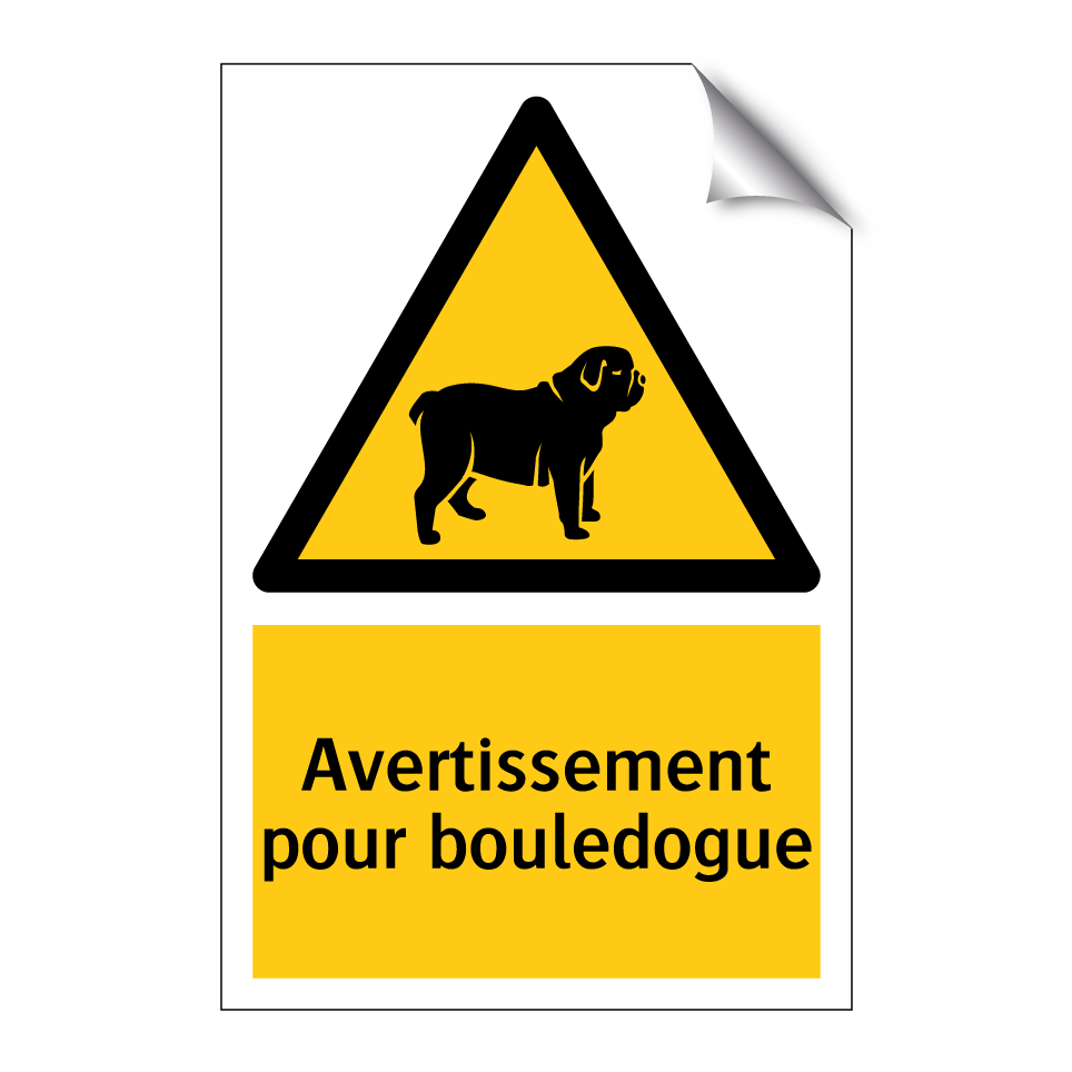 Panneau d'avertissement avec le texte : "Avertissement pour bouledogue"