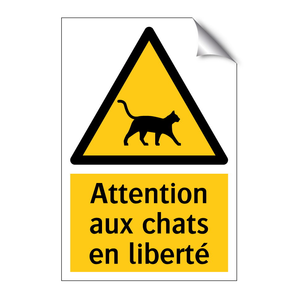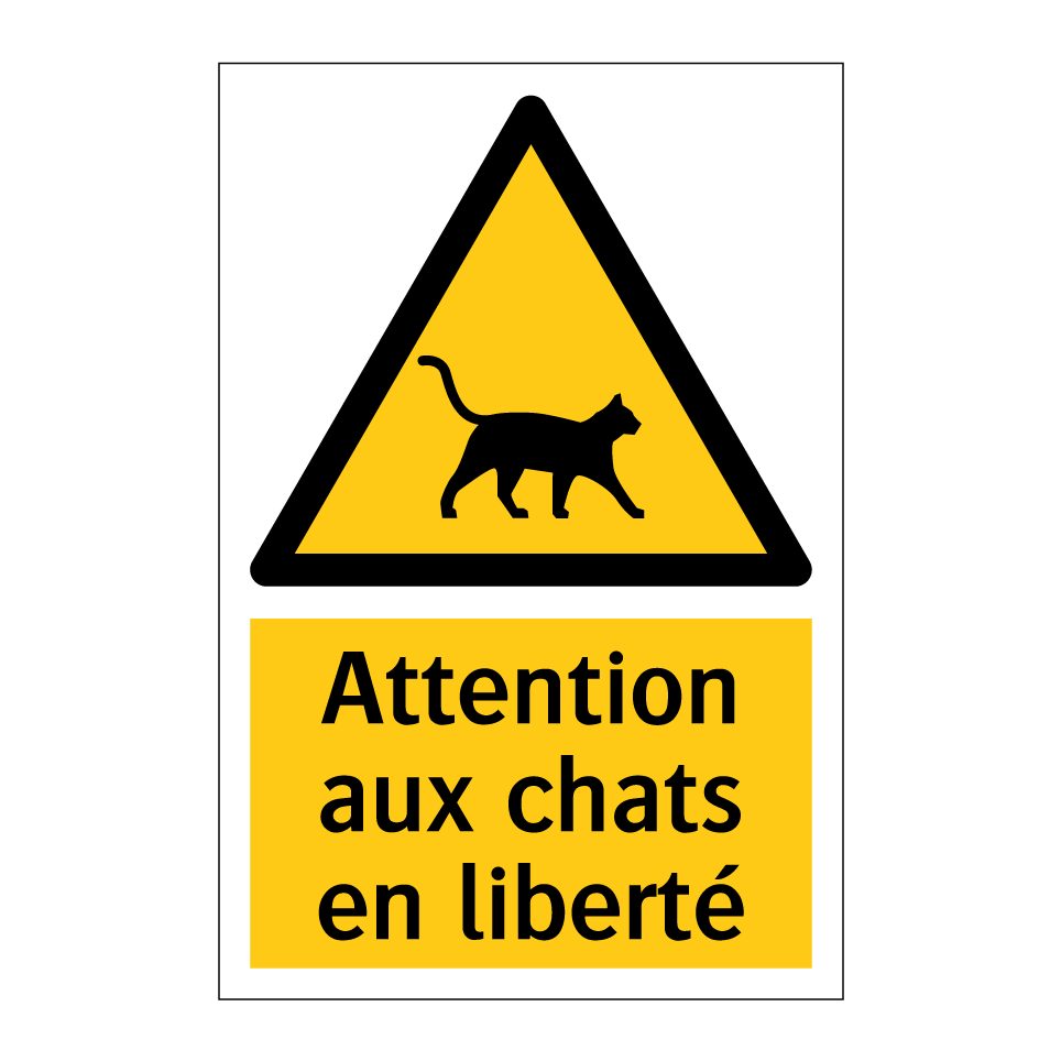 Panneau d'avertissement avec le texte : "Attention aux chats en liberté"