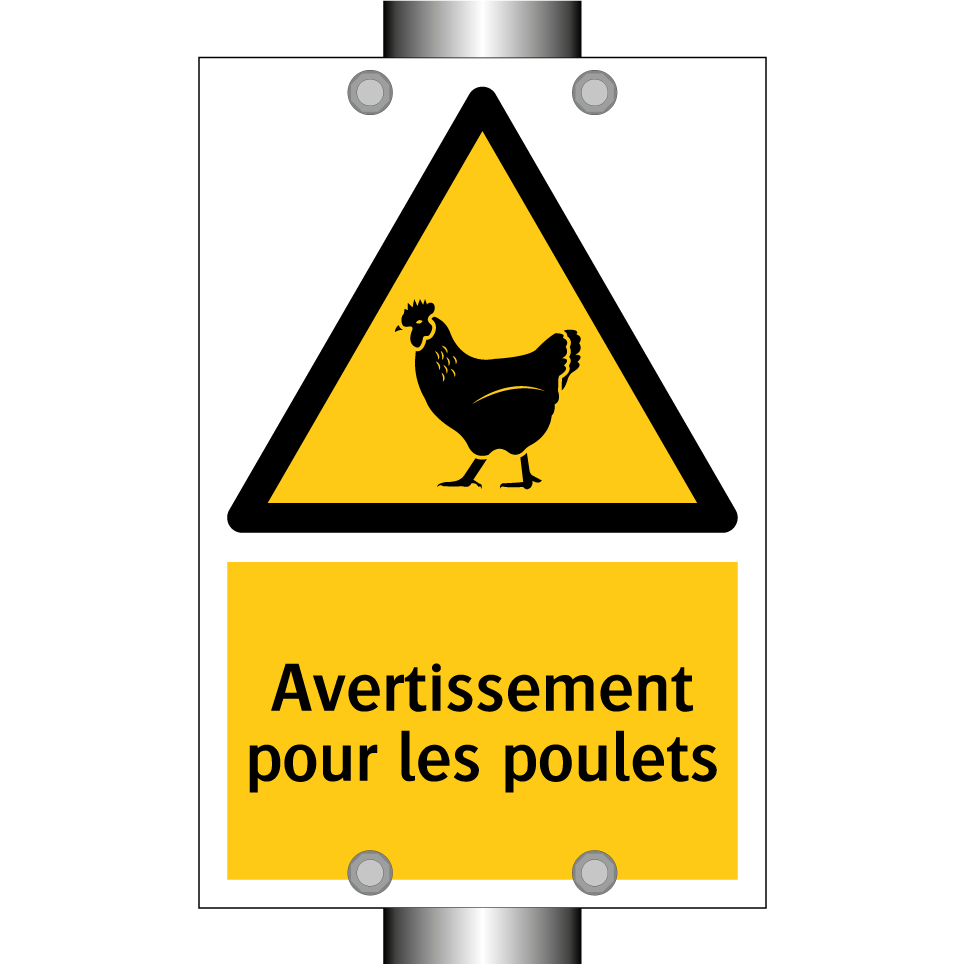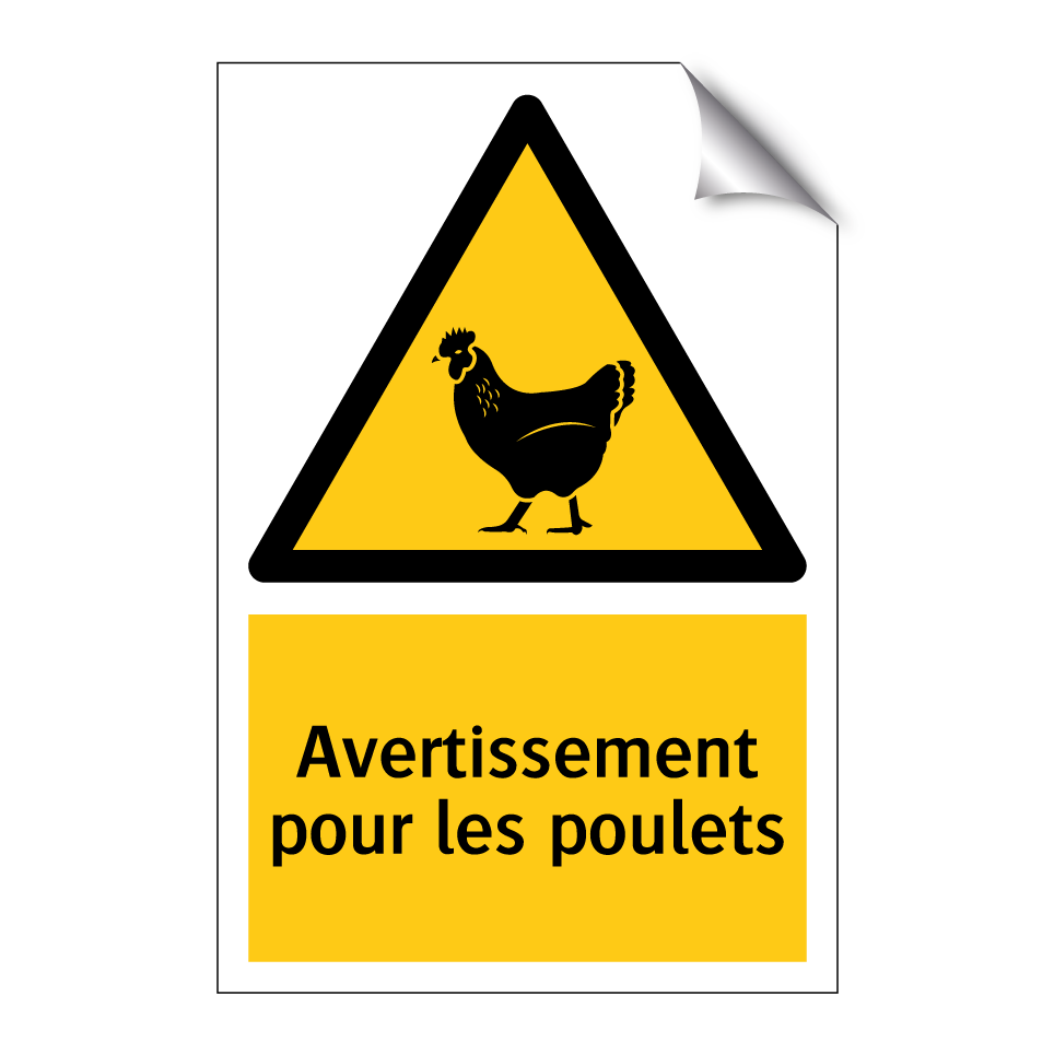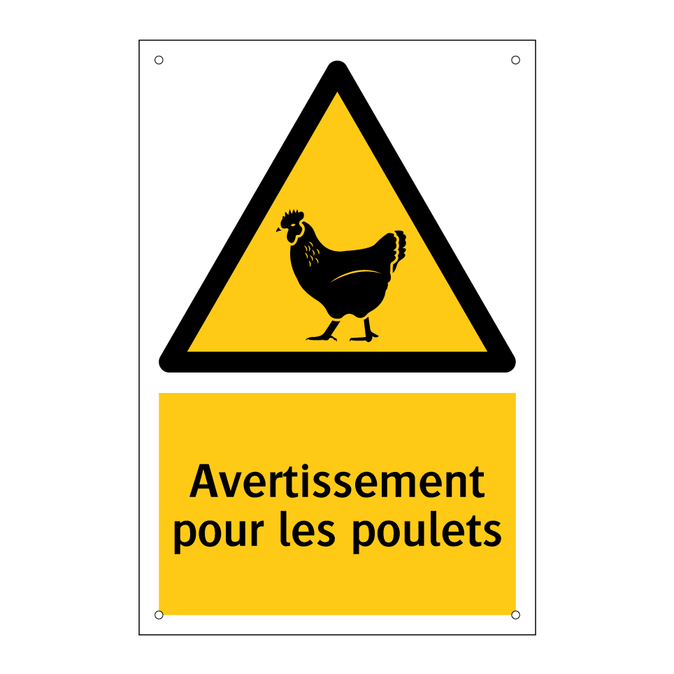Panneau d'avertissement avec le texte : "Avertissement pour les poulets"