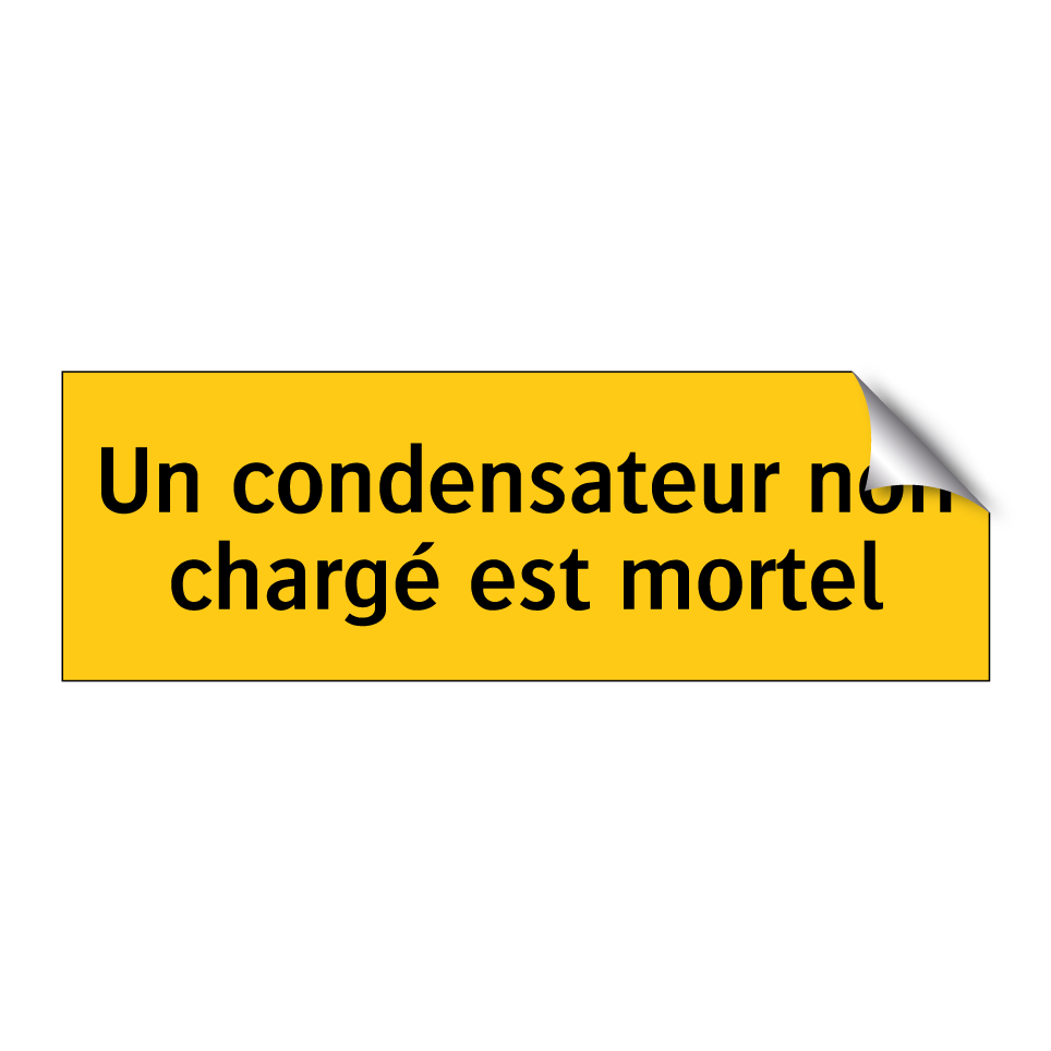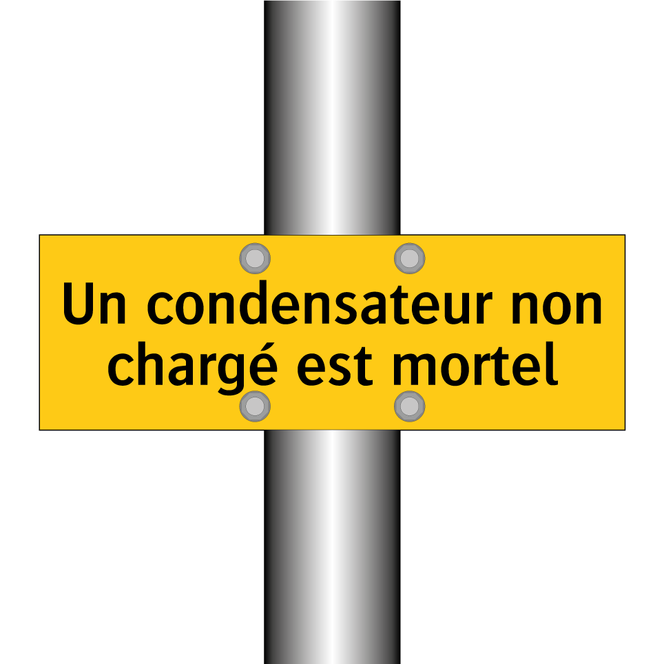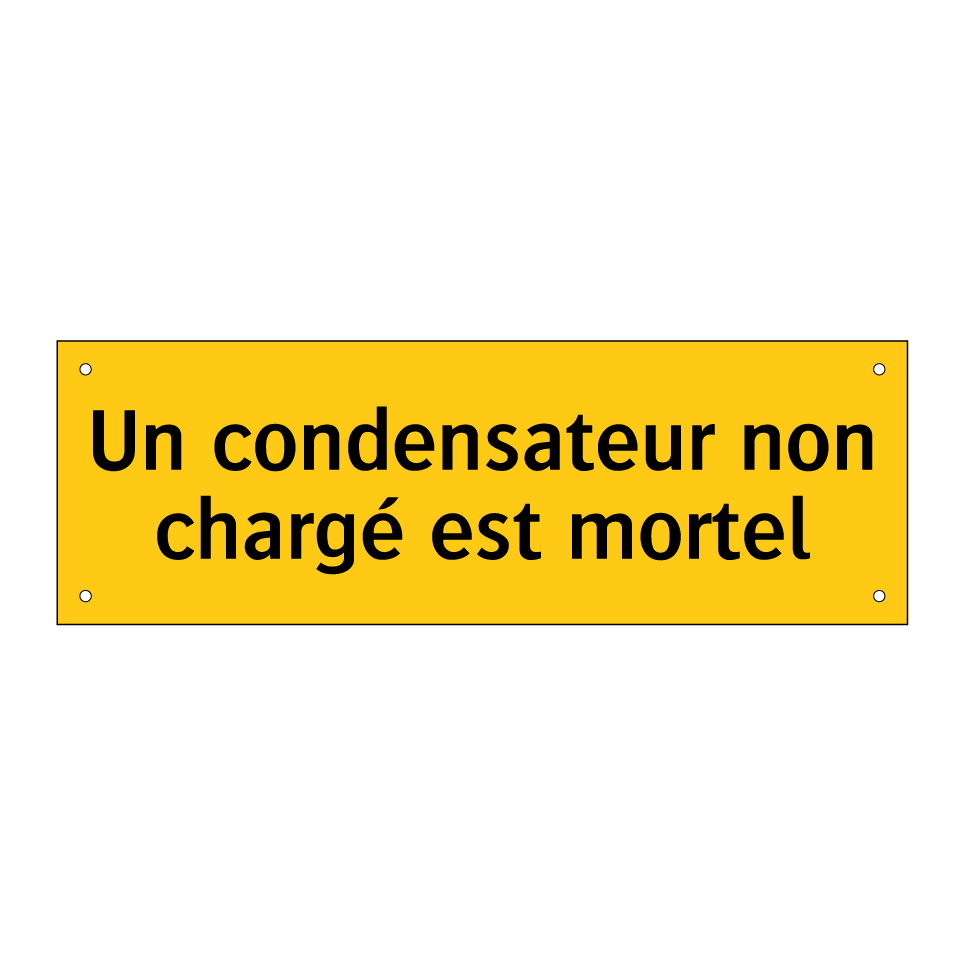 Panneau d'avertissement avec le texte : "Un condensateur non chargé est mortel"