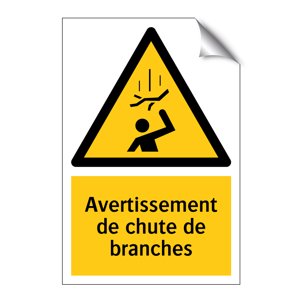Panneau d'avertissement avec le texte : "Avertissement de chute de branches"