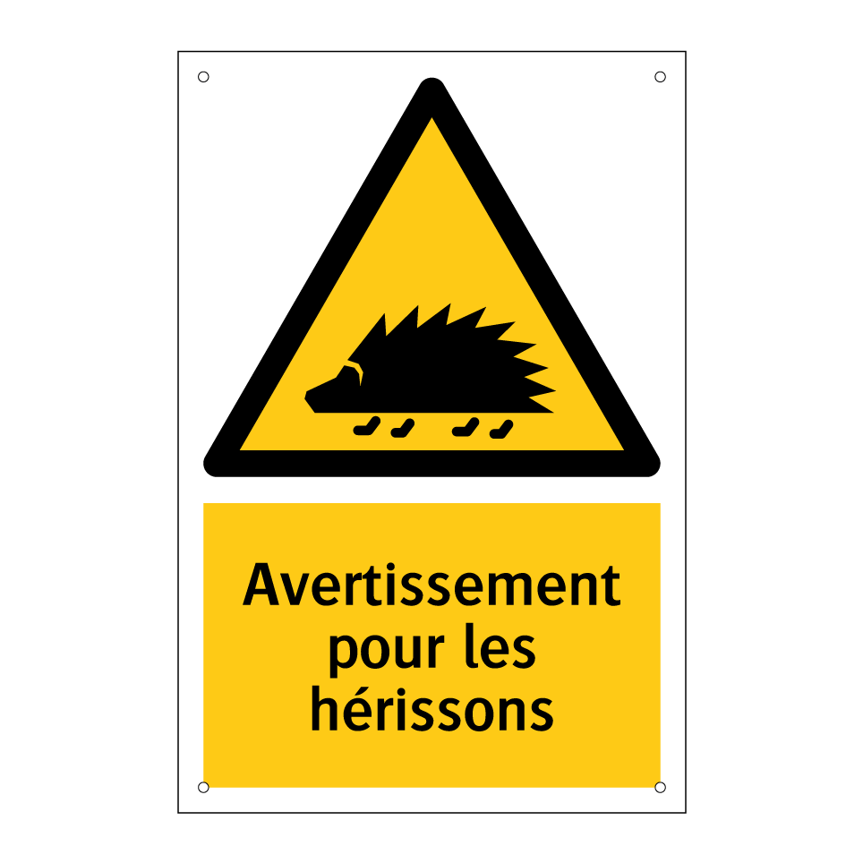 Panneau d'avertissement avec le texte : "Avertissement pour les hérissons"