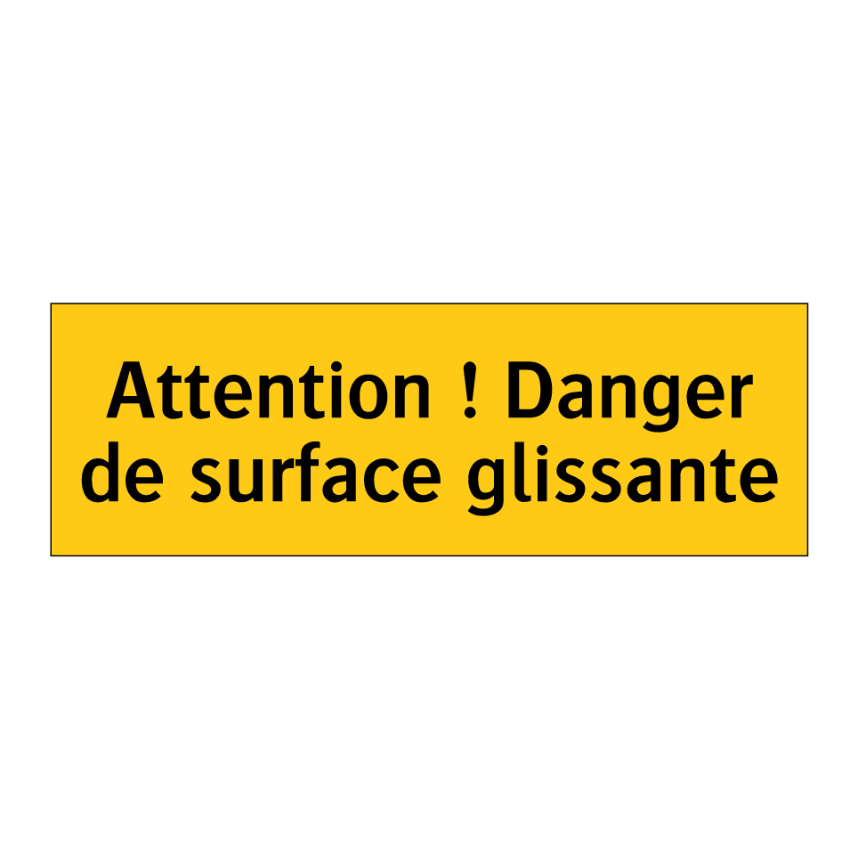 Panneau d'avertissement avec le texte : "Attention ! Danger de surface glissante"