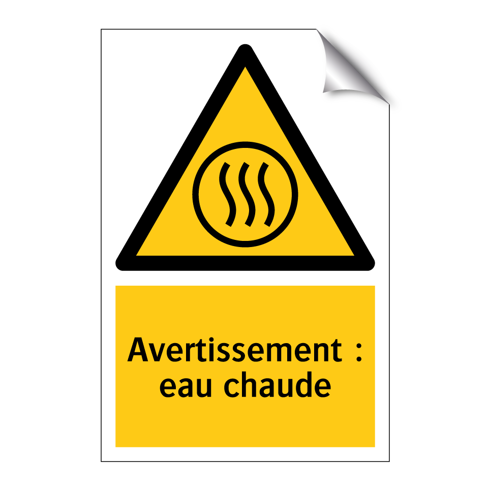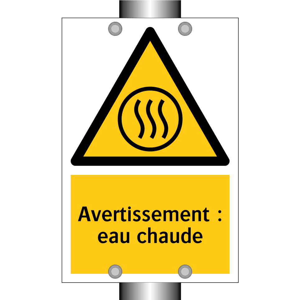 Panneau d'avertissement avec le texte : "Avertissement : eau chaude"