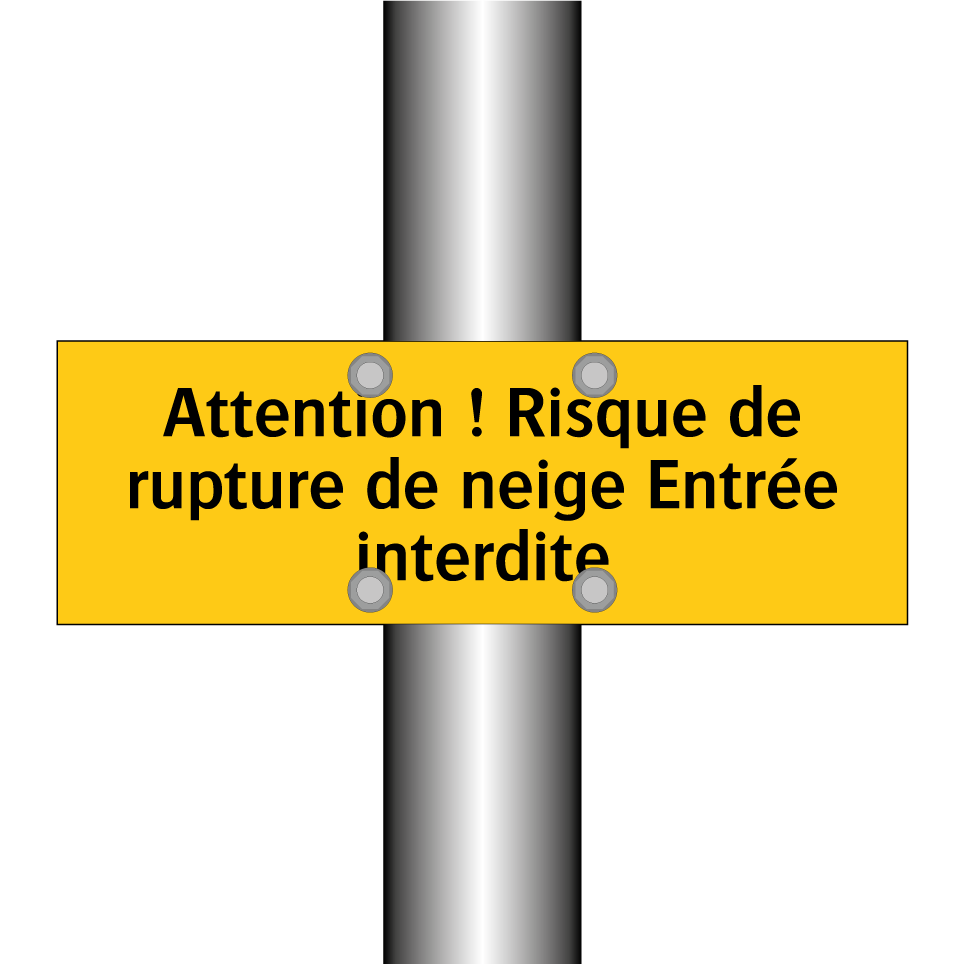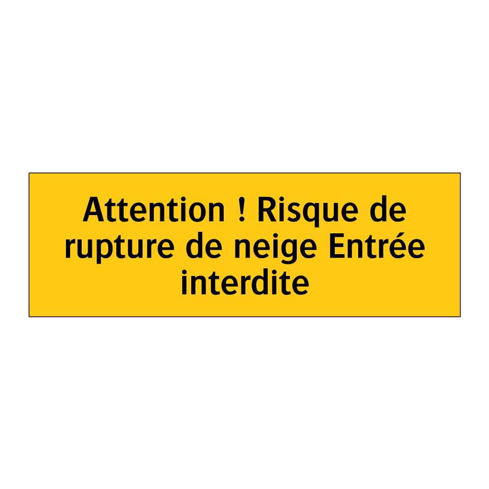 Panneau d'avertissement avec le texte : "Attention ! Risque de rupture de neige Entrée interdite"