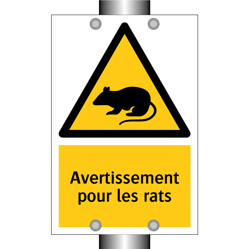 Panneau d'avertissement avec le texte : "Avertissement pour les rats"