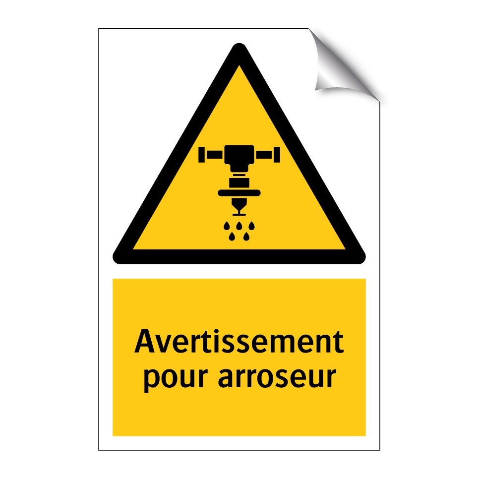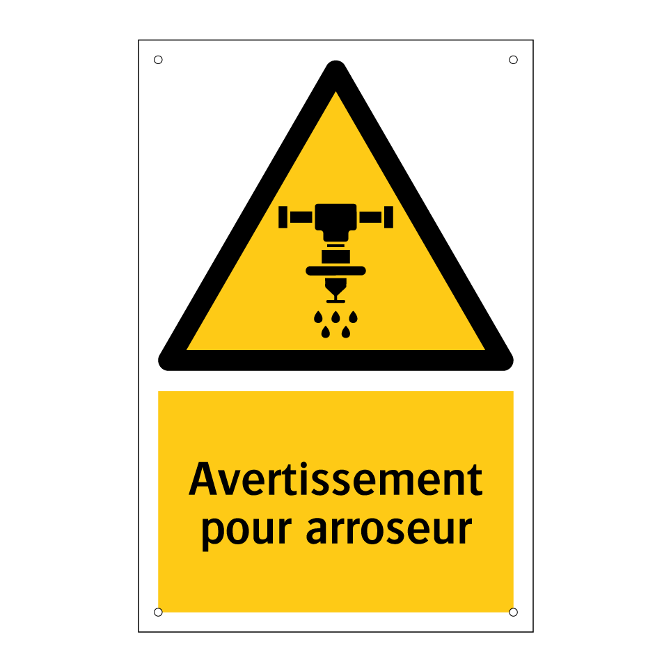 Panneau d'avertissement avec le texte : "Avertissement pour arroseur"