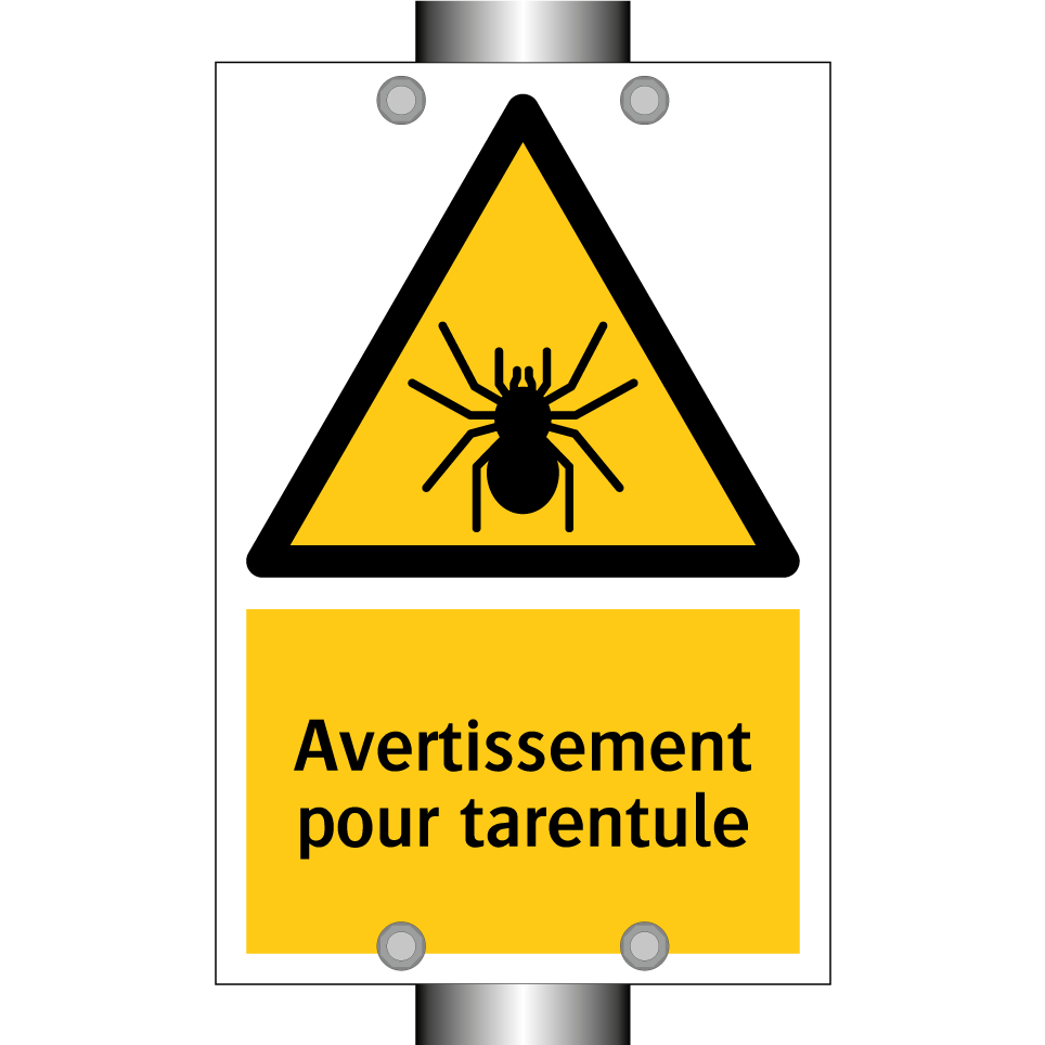 Panneau d'avertissement avec le texte : "Avertissement pour tarentule"