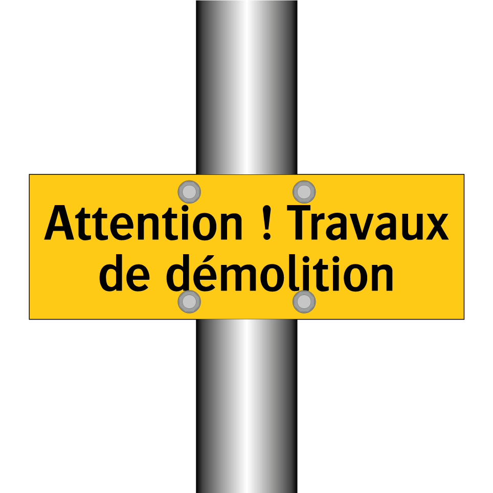 Panneau d'avertissement avec le texte : "Attention ! Travaux de démolition"