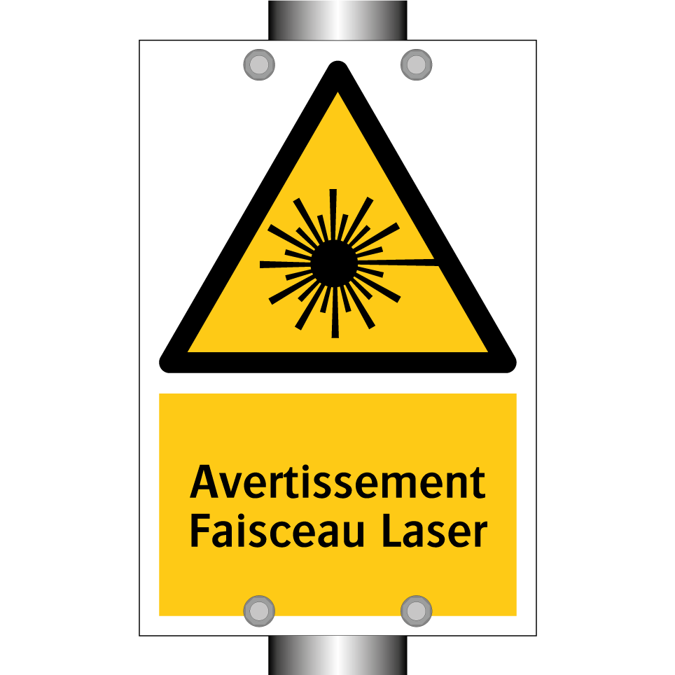 Panneau d'avertissement avec le texte : "Avertissement Faisceau Laser"
