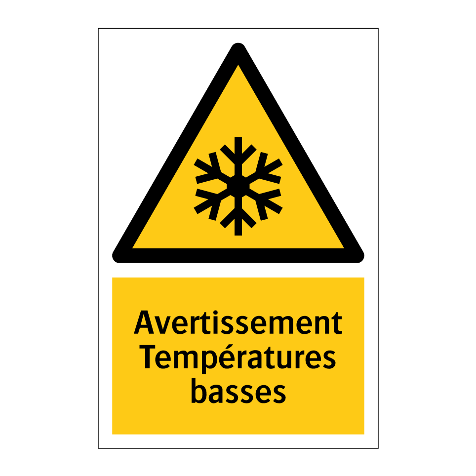 Panneau d'avertissement avec le texte : "Avertissement Températures basses"