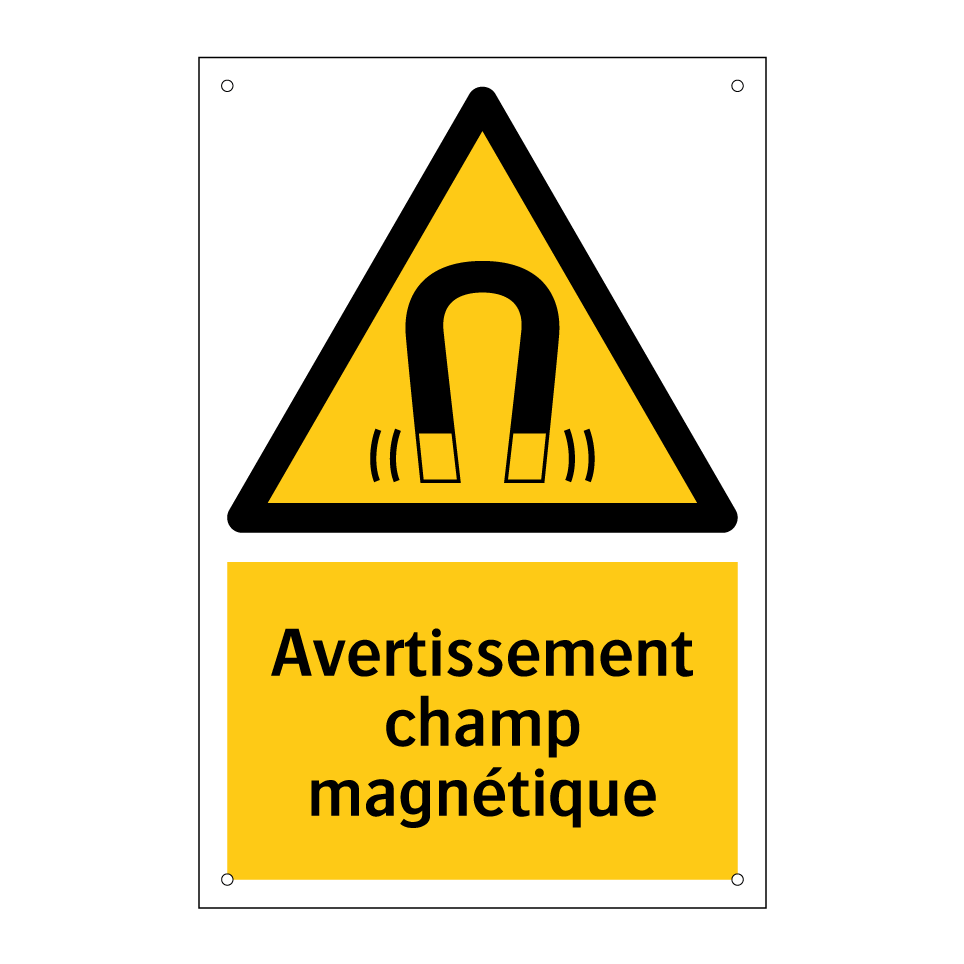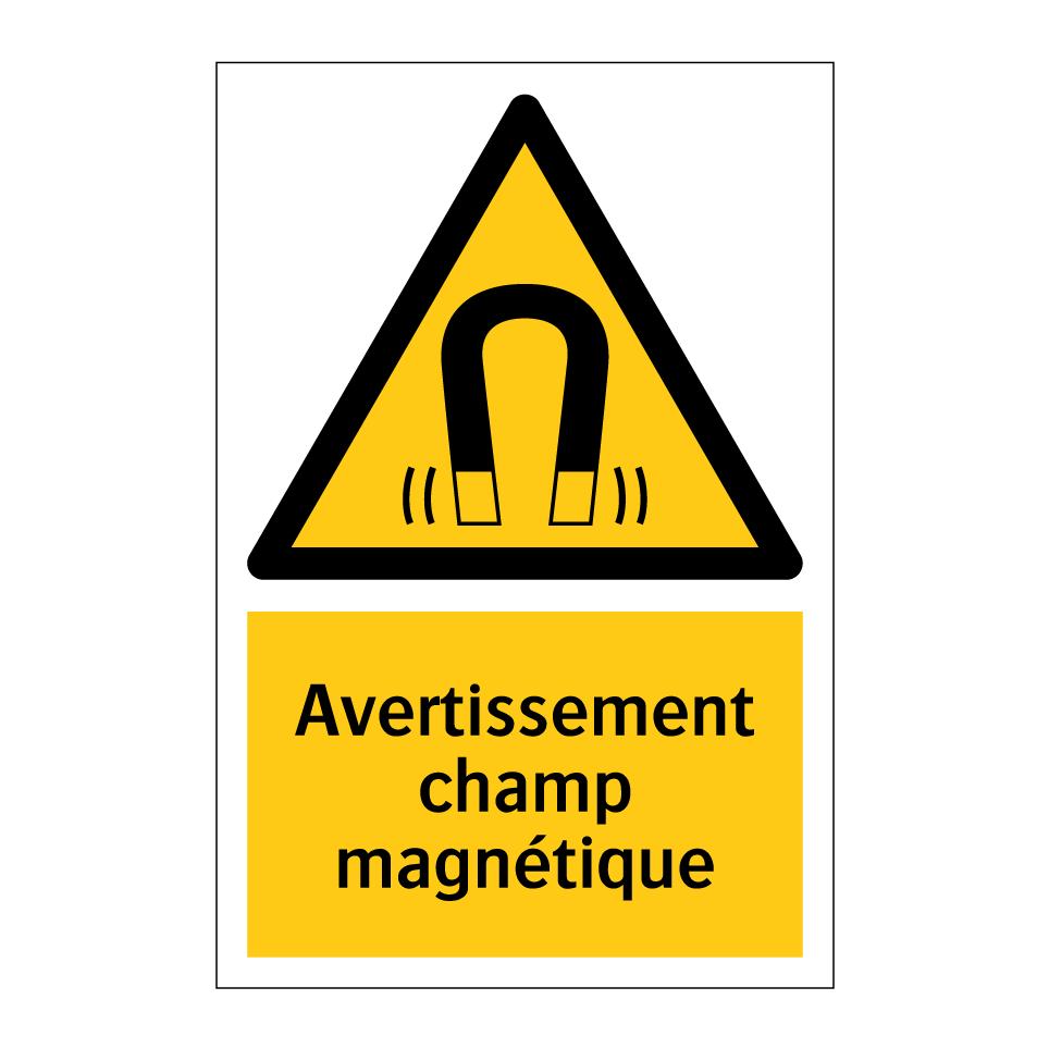 Panneau d'avertissement avec le texte : "Avertissement champ magnétique"