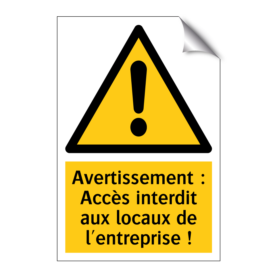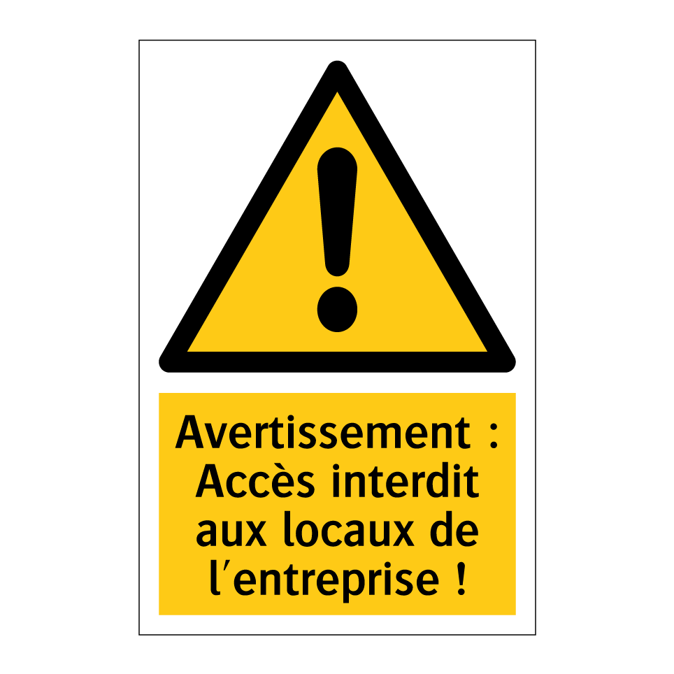 Panneau d'avertissement avec le texte : "Avertissement : Accès interdit aux locaux de l'entreprise !"