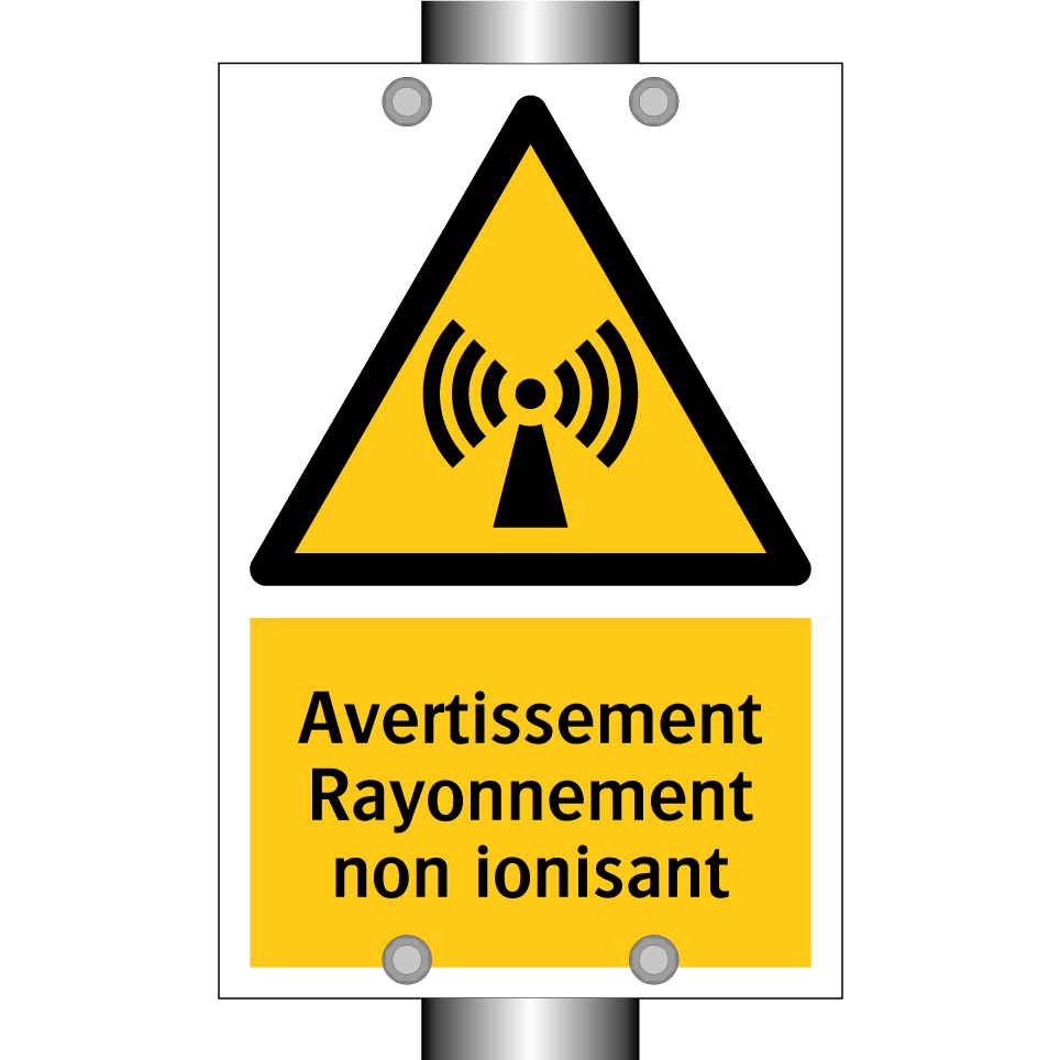 Panneau d'avertissement avec le texte : "Avertissement Rayonnement non ionisant"