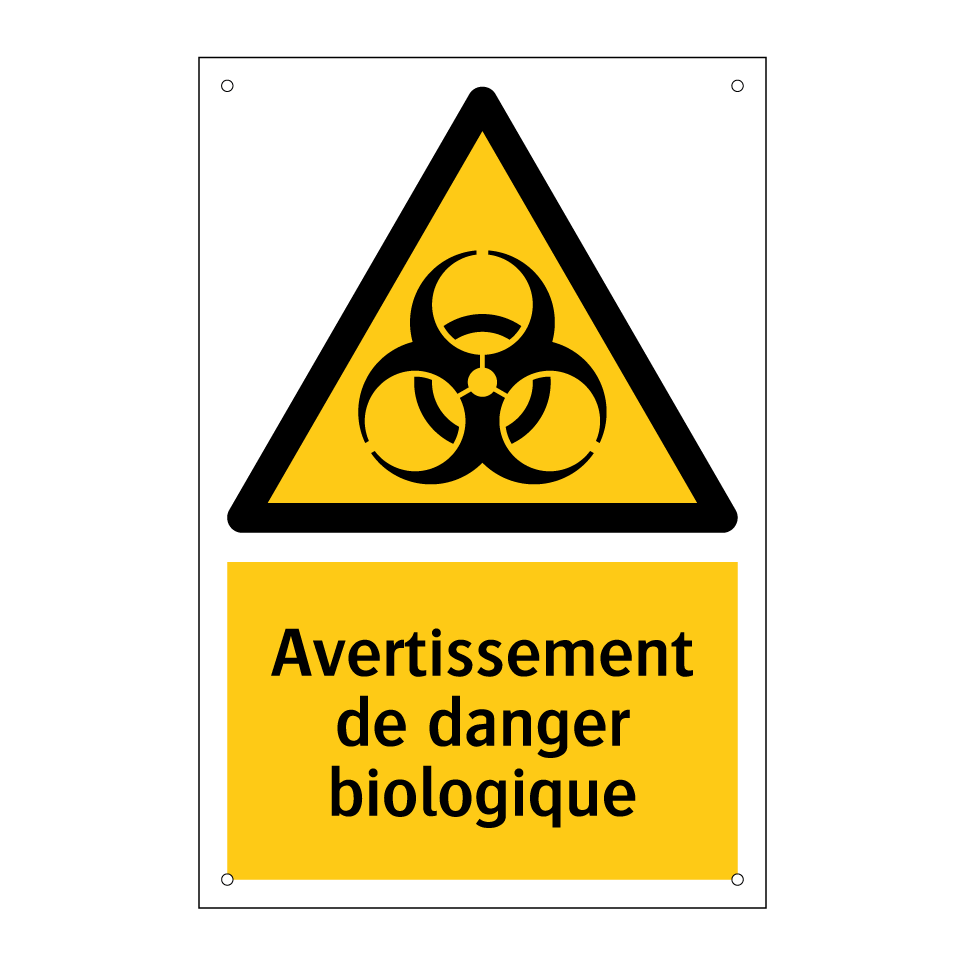 Panneau d'avertissement avec le texte : "Avertissement de danger biologique"