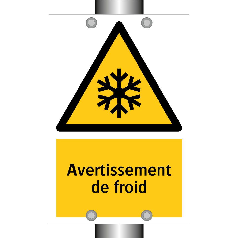 Panneau d'avertissement avec le texte : "Avertissement de froid"
