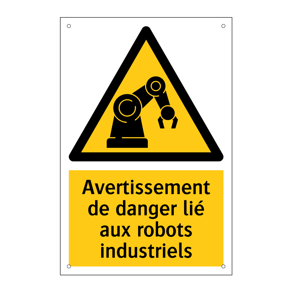 Panneau d'avertissement avec le texte : "Avertissement de danger lié aux robots industriels"