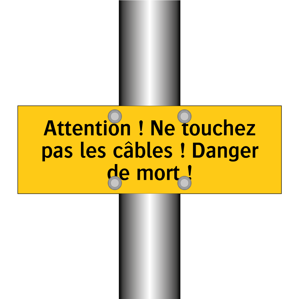 Panneau d'avertissement avec le texte : "Attention ! Ne touchez pas les câbles ! Danger de mort !"