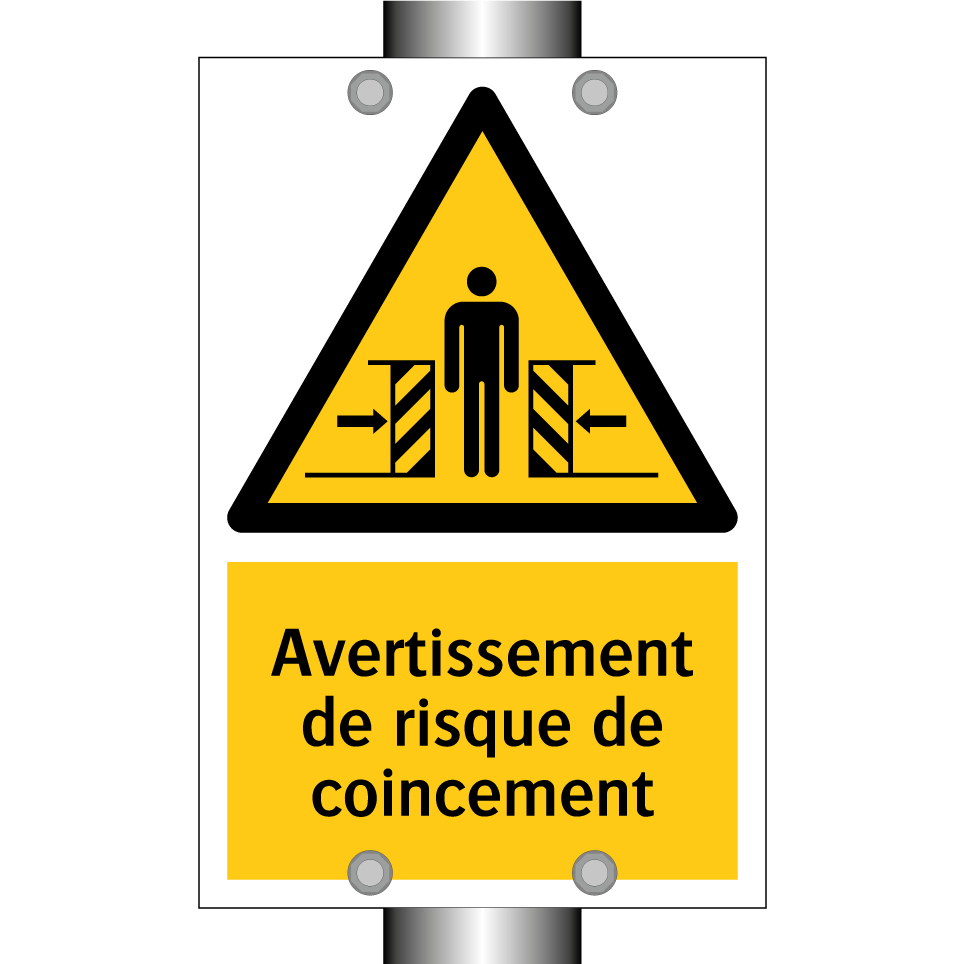 Panneau d'avertissement avec le texte : "Avertissement de risque de coincement"