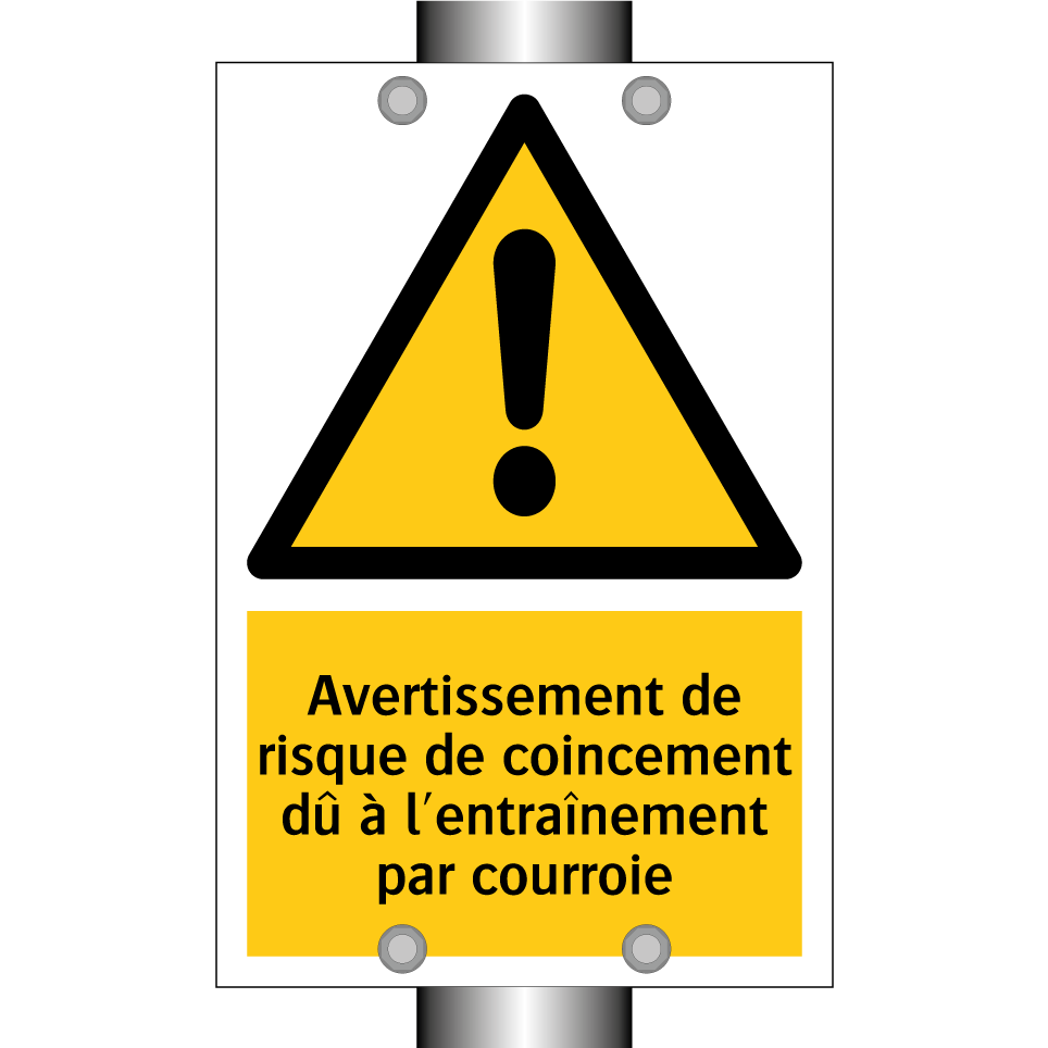 Ce panneau d'avertissement est essentiel pour garantir la sécurité dans les environnements industriels. Conçu pour signaler les dangers potentiels liés aux mécanismes à courroie, il attire l'attention sur les risques de coincement. Idéal pour être placé à proximité de machines ou d'équipements en mouvement, ce panneau prévient les employés et visiteurs des dangers invisibles. Sa couleur jaune vive et son texte noir assurent une visibilité optimale, même à distance. Utilisez ce panneau dans les usines, ateliers ou tout autre lieu où des équipements mécaniques sont présents pour renforcer la sécurité et prévenir les accidents.