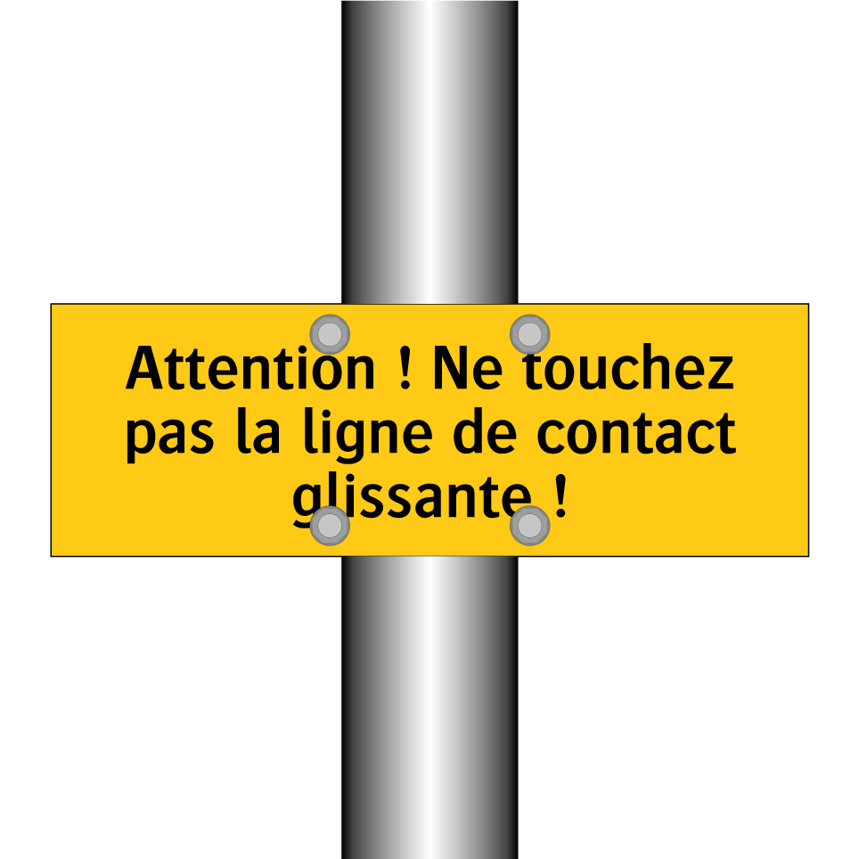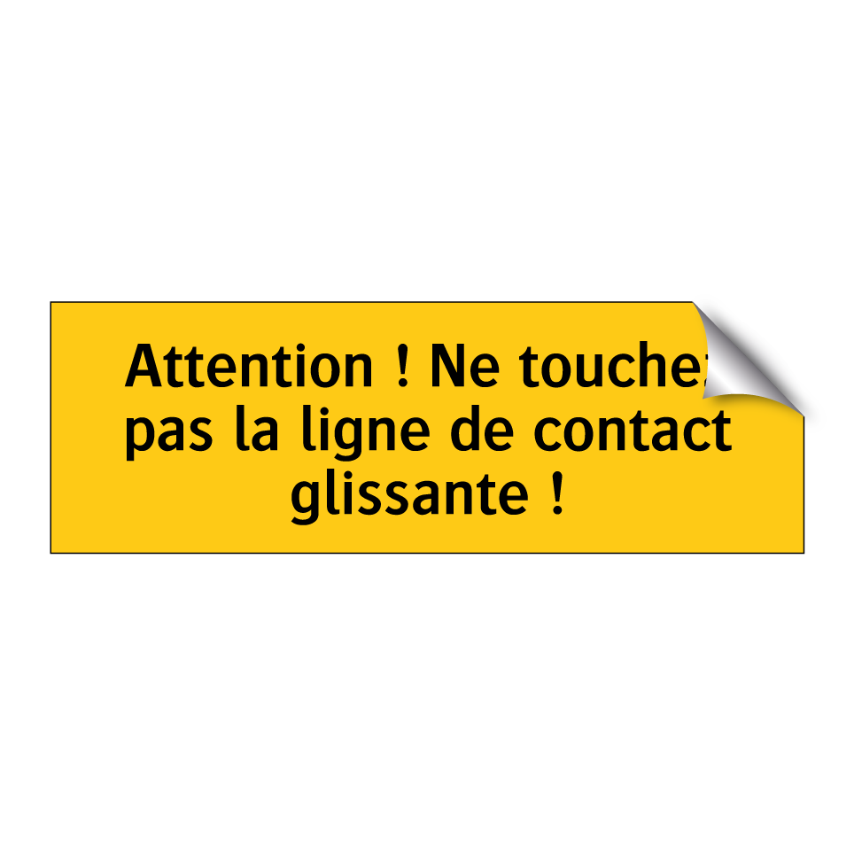 Panneau d'avertissement avec le texte : "Attention ! Ne touchez pas la ligne de contact glissante !"