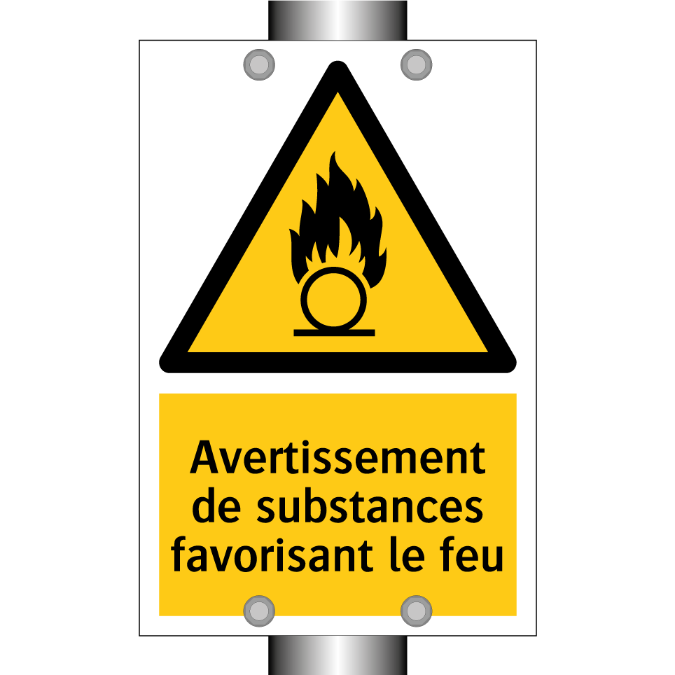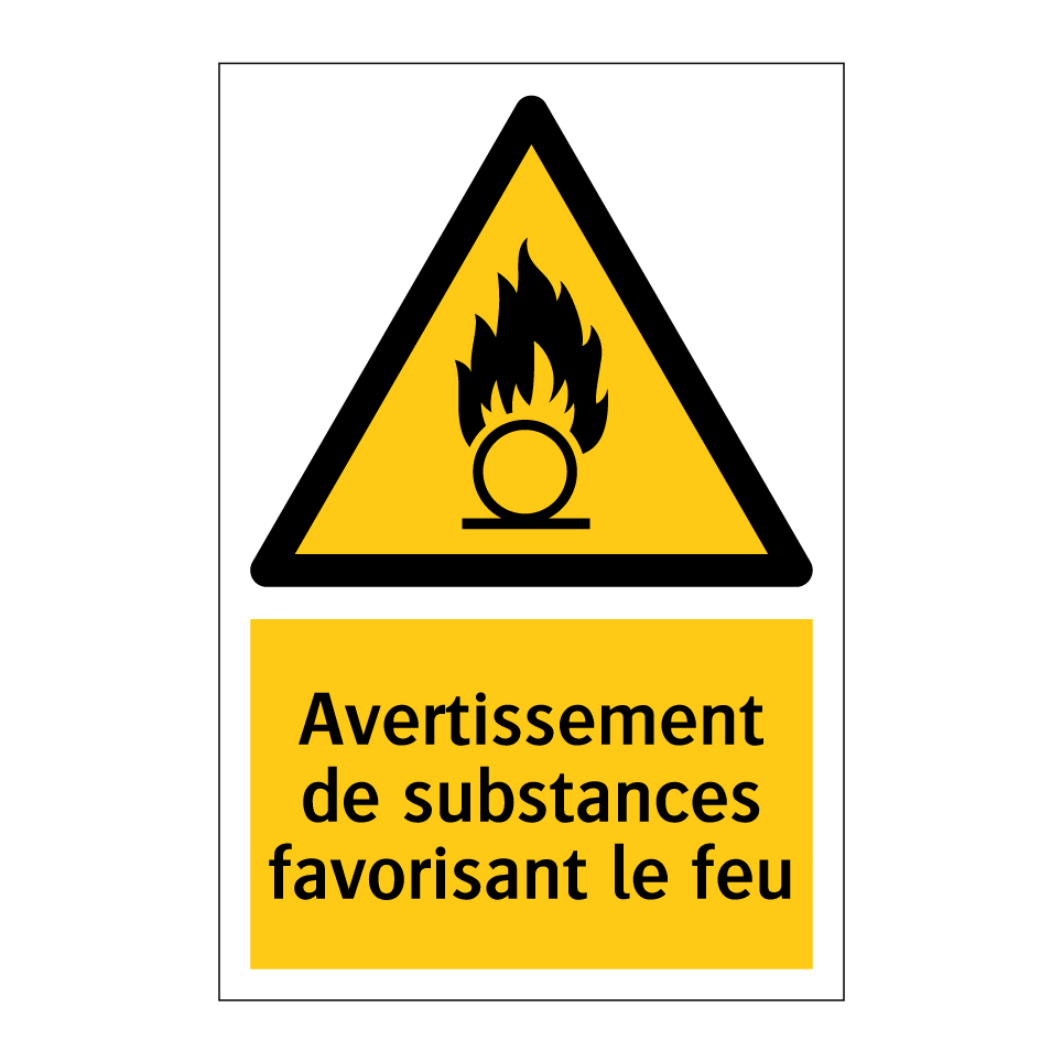 Panneau d'avertissement avec le texte : "Avertissement de substances favorisant le feu"