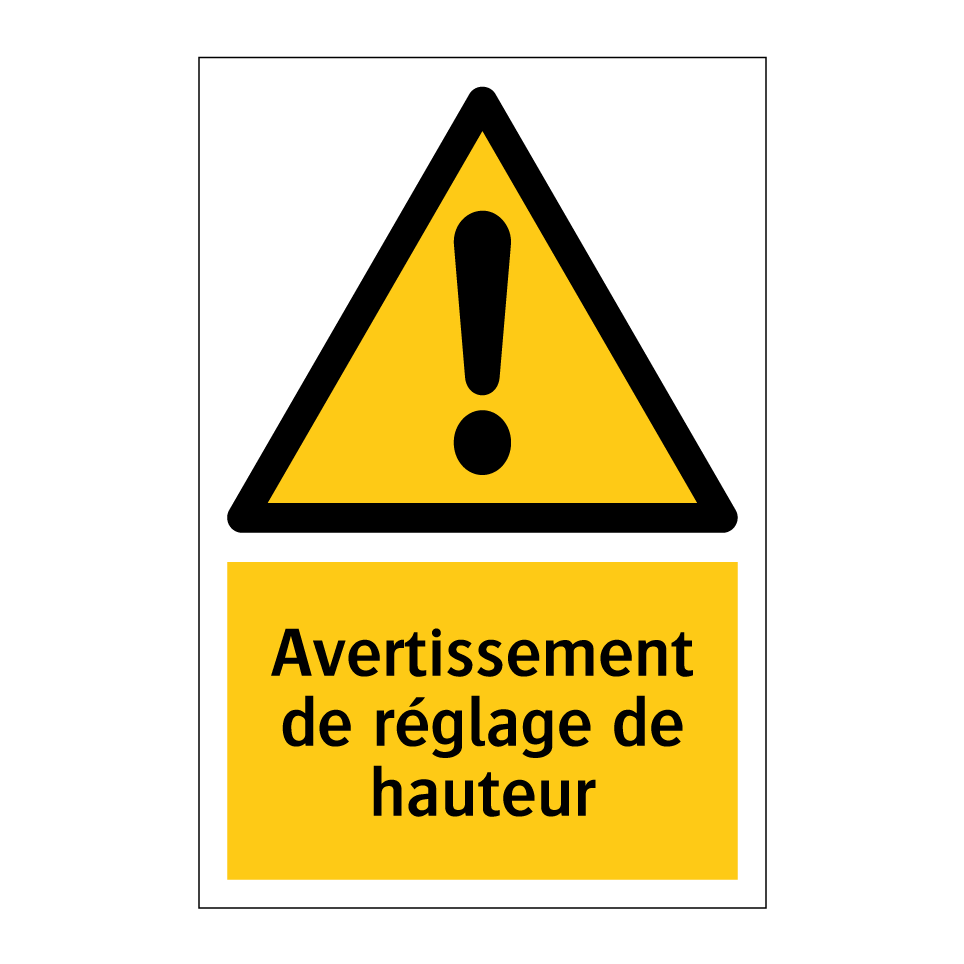 Panneau d'avertissement avec le texte : "Avertissement de réglage de hauteur"