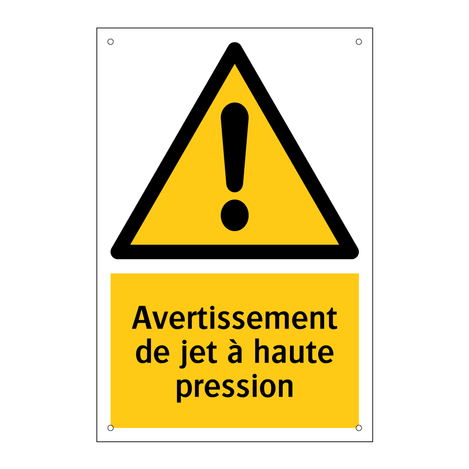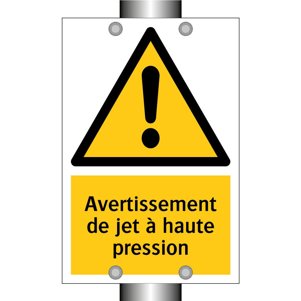 Panneau d'avertissement avec le texte : "Avertissement de jet à haute pression"