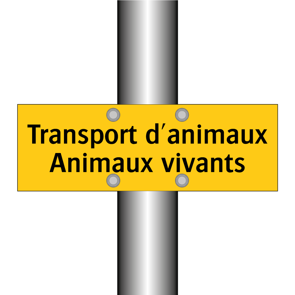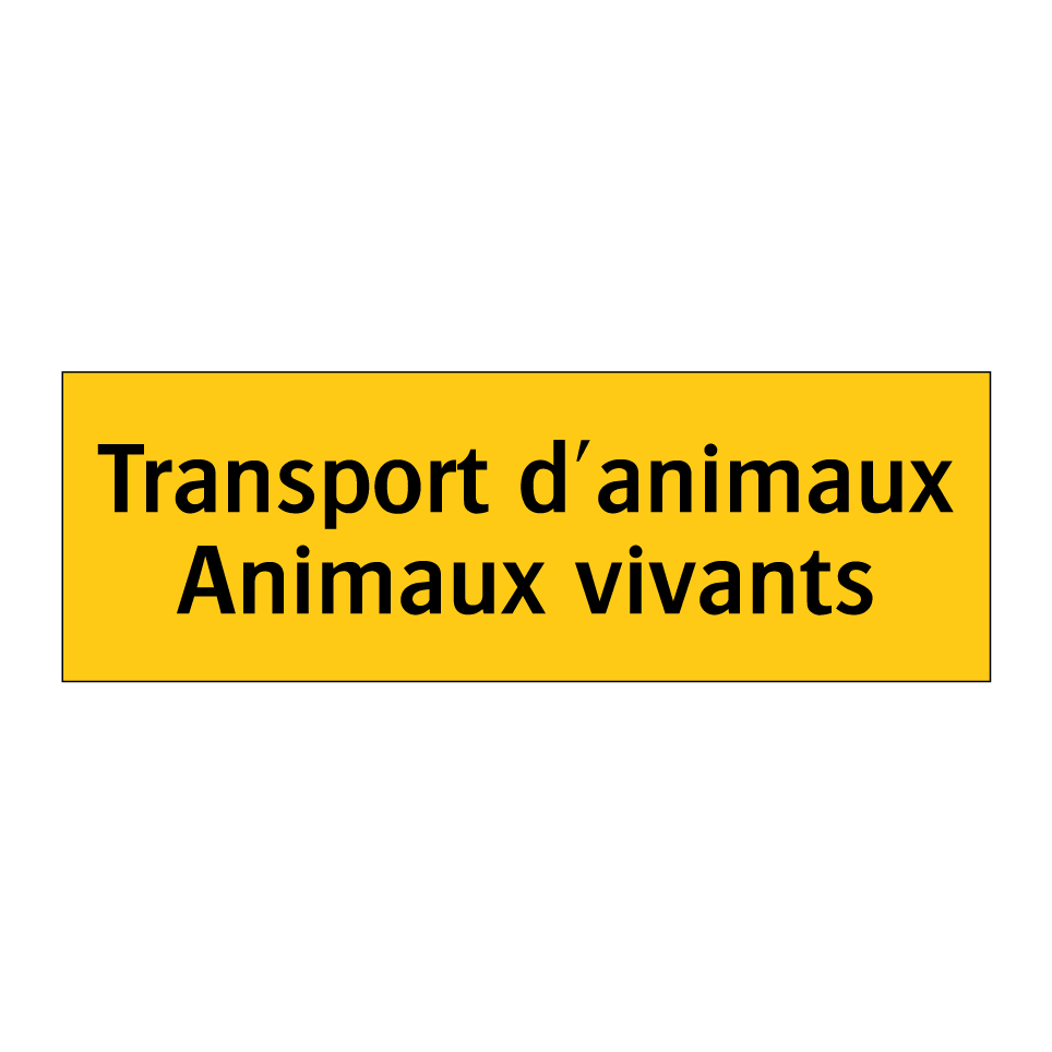 Panneau d'avertissement avec le texte : "Transport d'animaux Animaux vivants"