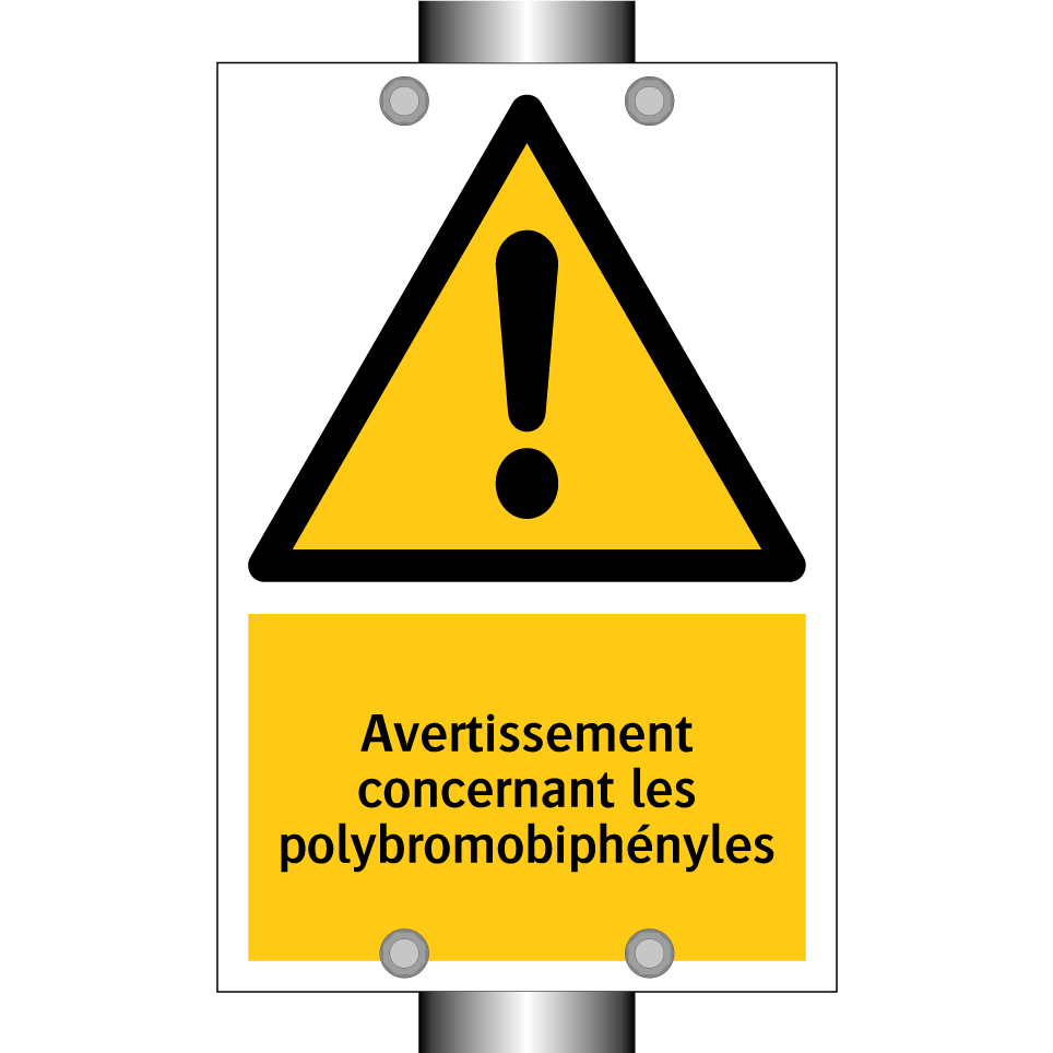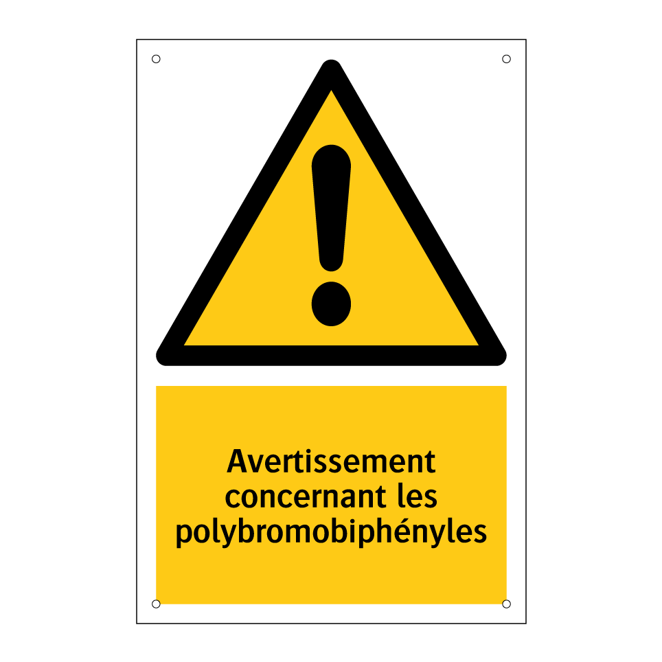 Panneau d'avertissement avec le texte : "Avertissement concernant les polybromobiphényles"