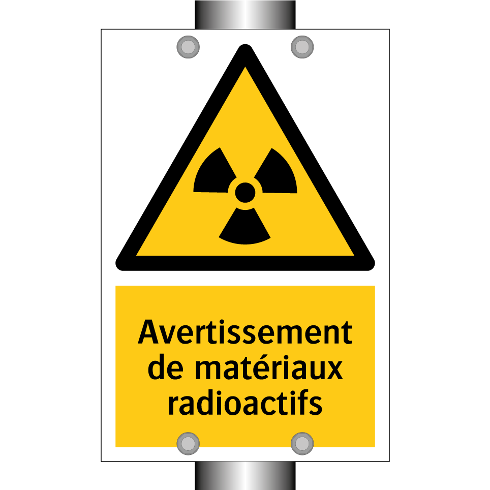 Panneau d'avertissement avec le texte : "Avertissement de matériaux radioactifs"