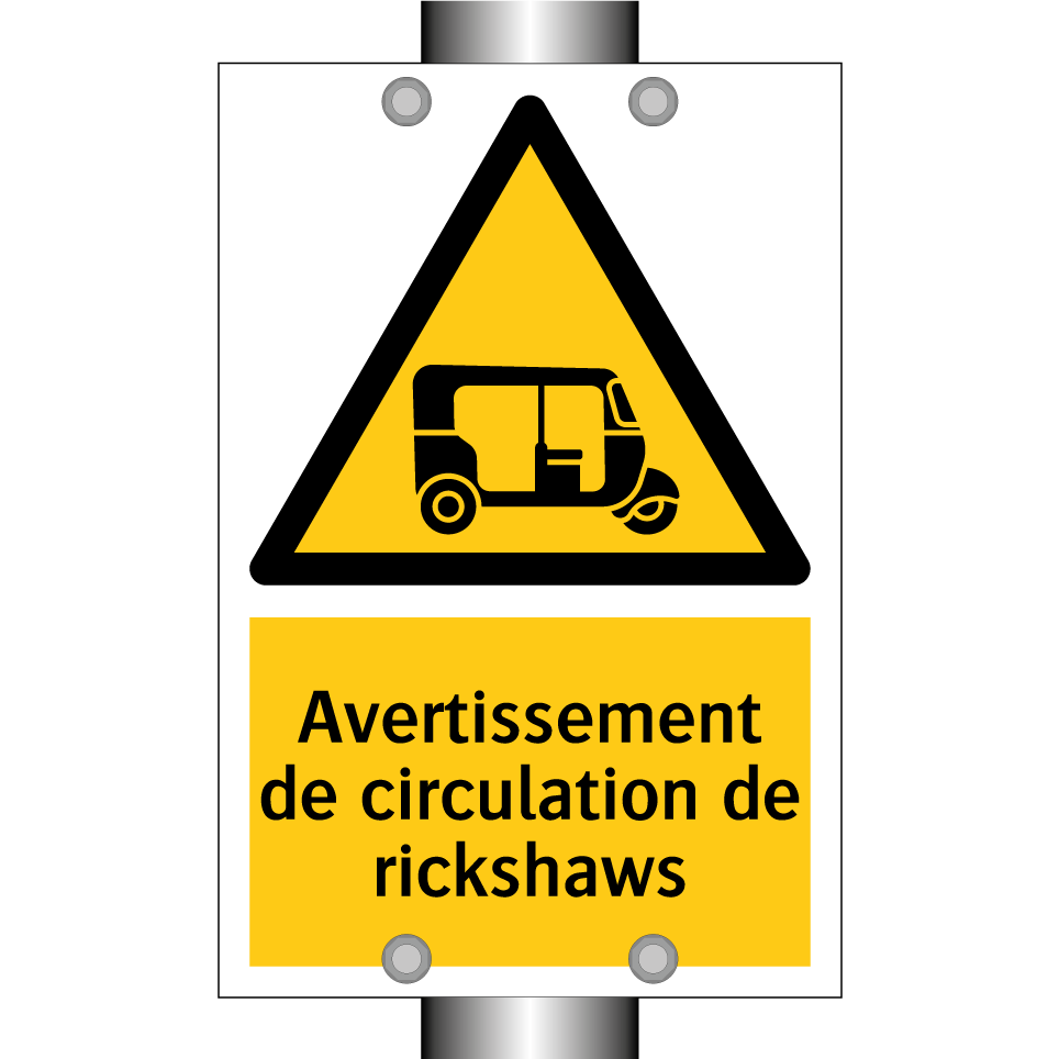 Panneau d'avertissement avec le texte : "Avertissement de circulation de rickshaws"