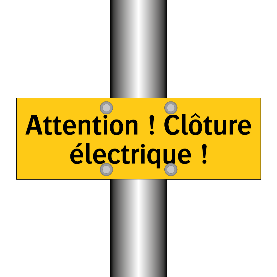 Panneau d'avertissement avec le texte : "Attention ! Clôture électrique !"