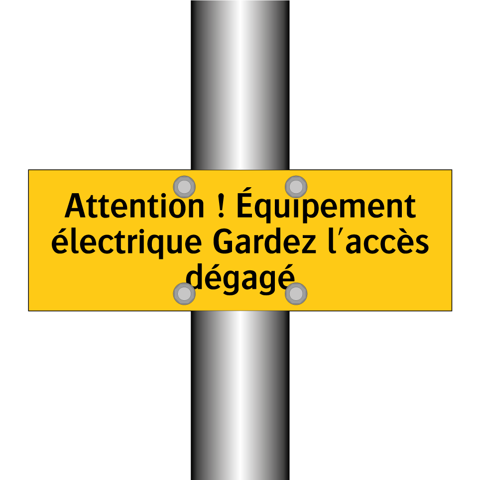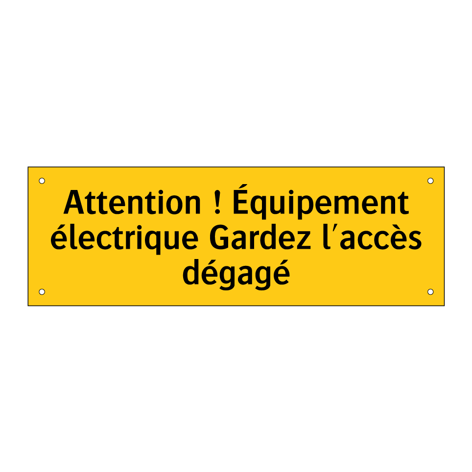 Panneau d'avertissement avec le texte : "Attention ! Équipement électrique Gardez l'accès dégagé"